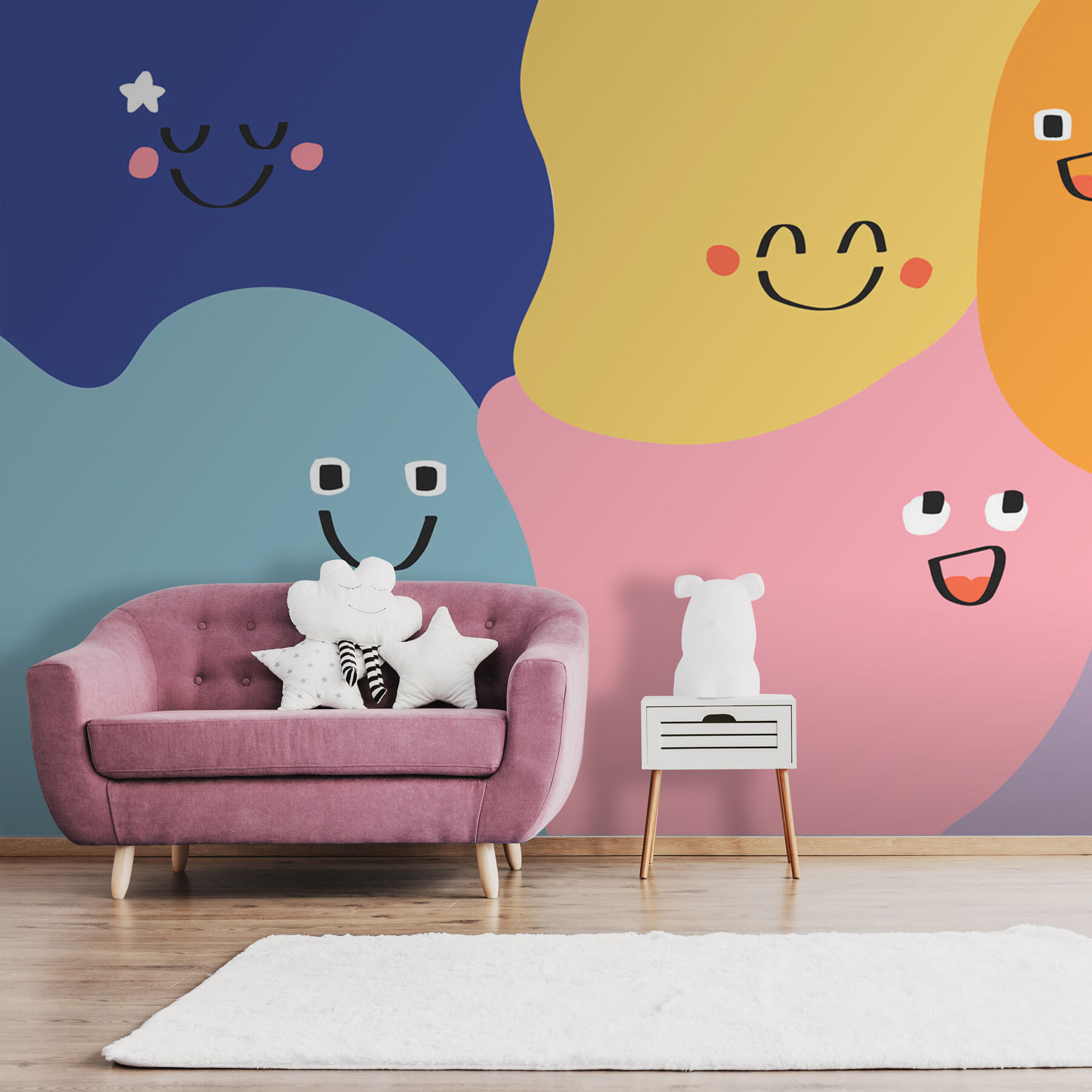 Vneste do každého prostoru kapku radosti s touto živou nástěnnou malbou s hravou směsicí barevných tvarů a veselých tváří. Je to jako okamžité zlepšení nálady na vaší zdi! Představte si, že vejdete do místnosti, která působí jako živá – při každém pohledu se setkáte s veselými výrazy, které jako by se na vás téměř usmívaly. Ideální pro útulné zákoutí nebo živou hernu, dodává okouzlující nádech, který podněcuje kreativitu. Přátelé a rodina si ji zamilují a možná se i trochu zasmějí. Není to jen dekorace; je to oslava rozmarnosti a vřelosti, která bez námahy promění váš prostor v zábavné útočiště. Kdo by se nechtěl cítit šťastný už jen při pohledu na své stěny?