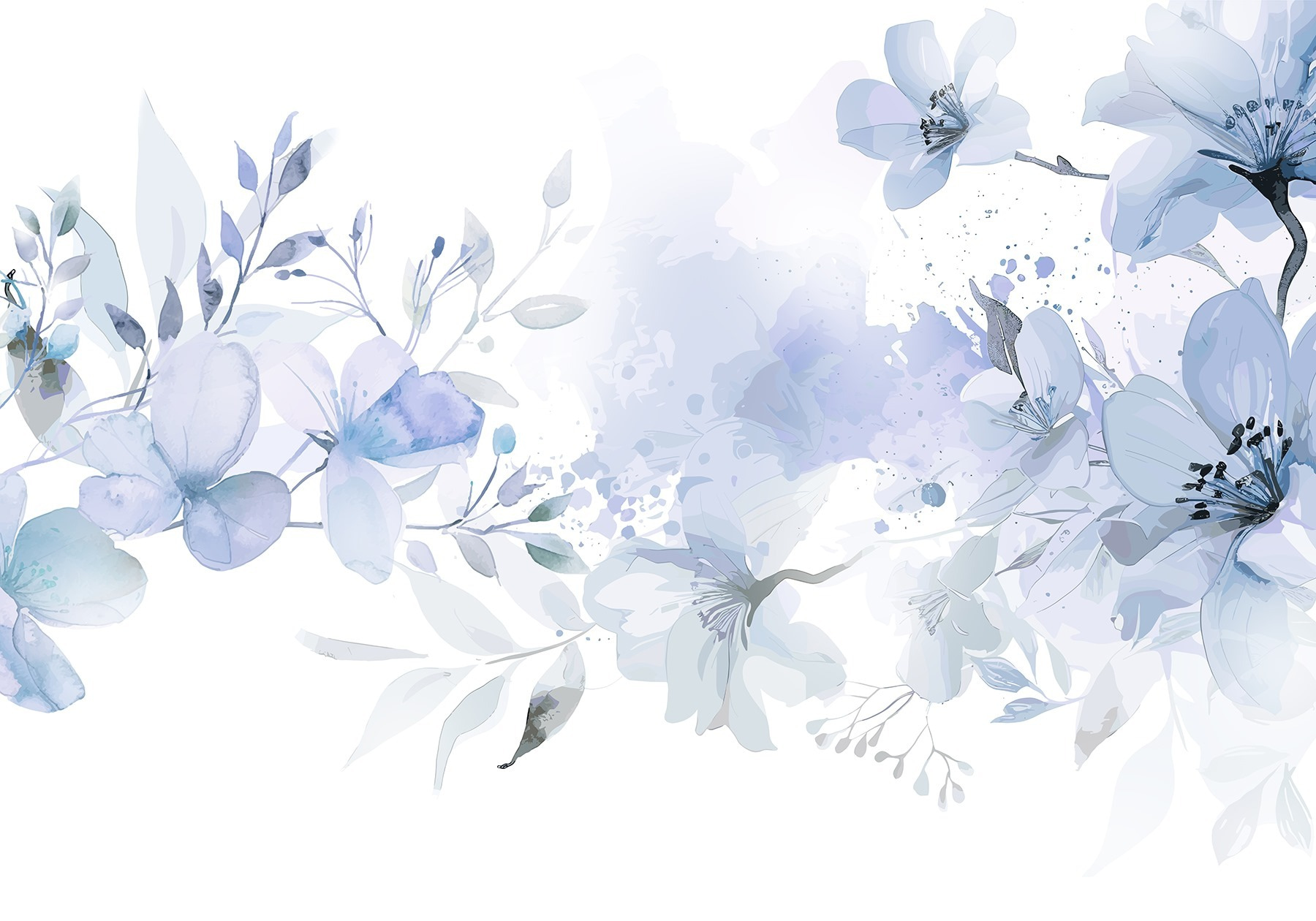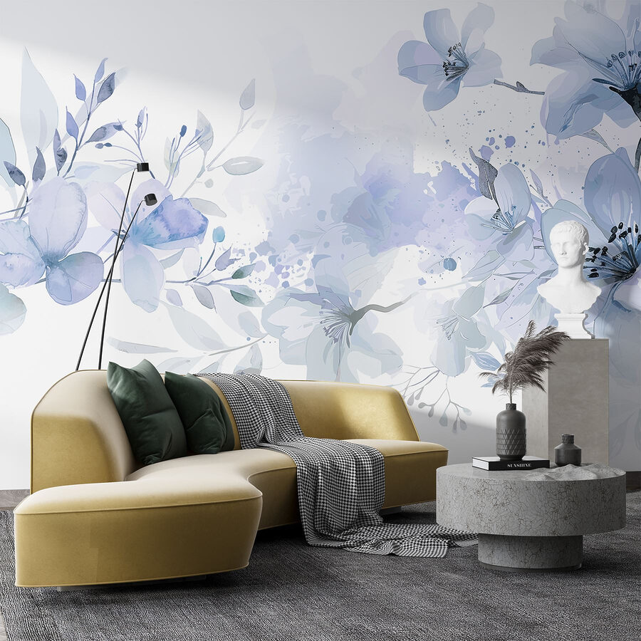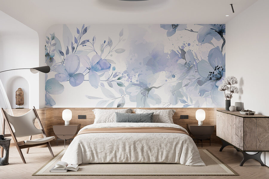 Proměňte jakoukoli stěnu v klidné útočiště s nástěnnou malbou “Éterické květy v akvarelových barvách”. Představte si, že vejdete do místnosti, kde se kolem vás ovíjejí jemné květy v měkké modré a jemné zelené barvě, takže se každý den budete cítit jako na klidné procházce japonskou zahradou. Je to jako přenést klidný vánek do interiéru – dokonalý partner pro vaši ranní kávu nebo večerní odpočinek.