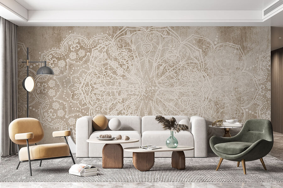 Proměňte každou místnost v útulné útočiště s touto úžasnou nástěnnou malbou s bílým ornamentálním vzorem na teplém hnědém pozadí. Představte si, jak relaxujete u šálku kávy a přitom se díváte na složité vzory, které jako by vám našeptávaly tajemství pohody a tvořivosti. Je to jako pozvat si domů umělecké dílo. Tato nástěnná malba, která se skvěle hodí do obývacího pokoje nebo rozmarné ložnice, přináší nádech elegance a tepla. Navíc se díky ní možná ostatní zeptají: “Kde jsi to vzal?” – a vy se můžete vědoucně usmát. Není to jen dekorace, je to začátek konverzace!