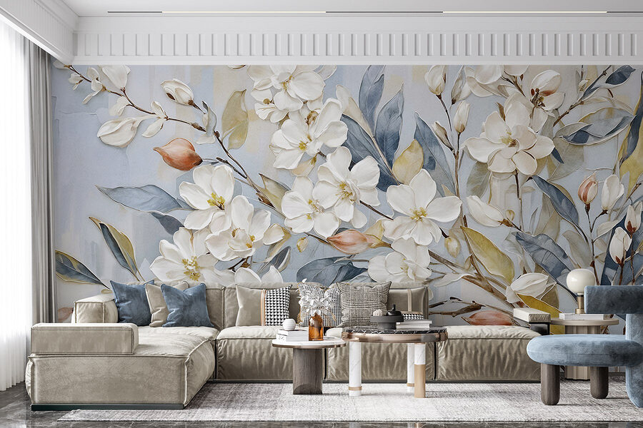 Proměňte svůj prostor pomocí této úžasné nástěnné malby s jemnými bílými květy a svěžími listy. Představte si, že vstoupíte do místnosti, která je jako klidná japonská zahrada – klidná, osvěžující a naprosto krásná. Jemné barvy navozují pocit klidu jako jemný vánek za jarního dne. Listy šeptají příběhy přírody, zatímco květy jako by se pohupovaly a přinášely nádech elegance a tepla. Ať už se nachází v obývacím pokoji nebo v útulném čtecím koutku, tato nástěnná malba jistě vyvolá radost a obdiv – jako nečekané objetí od dobrého přítele. Je to jako mít v interiéru malý kousek přírody, který rozzáří vaši náladu a prostor tím nejkouzelnějším způsobem.
