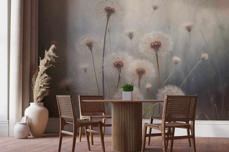 Proměňte každou místnost v klidné útočiště díky této okouzlující nástěnné malbě s jemnými bílými kvetoucími pampeliškami. Představte si, že vstoupíte do jemného vánku, kde pampelišky tančí a pohupují se – poetické, že? Tyto jemné, nadýchané květy dokáží rozjasnit prostor a téměř šeptají tajemství přírody. Tato nástěnná malba, ideální pro útulný čtecí koutek nebo uklidňující ložnici, vytváří příjemnou atmosféru, která působí svěže a klidně. Ať už sníte nebo popíjíte čaj, je to jako mít v interiéru kousek přírody. Navíc, kdo by neměl rád pampelišky? Jsou to ti největší smolaři, kteří se pouhým jemným pofoukáním promění v rozkošná přání. Tak proč se nenechat touto krásnou nástěnnou malbou přenést někam na kouzelné místo?