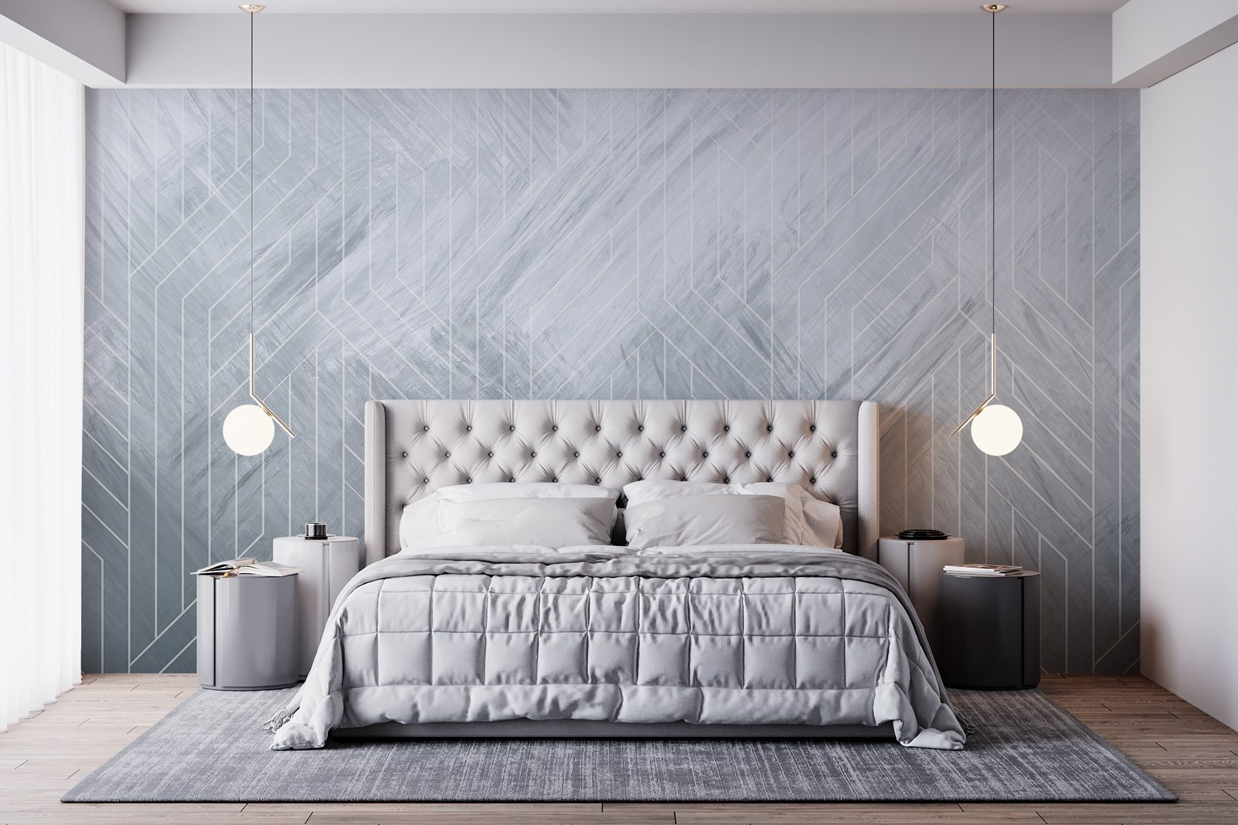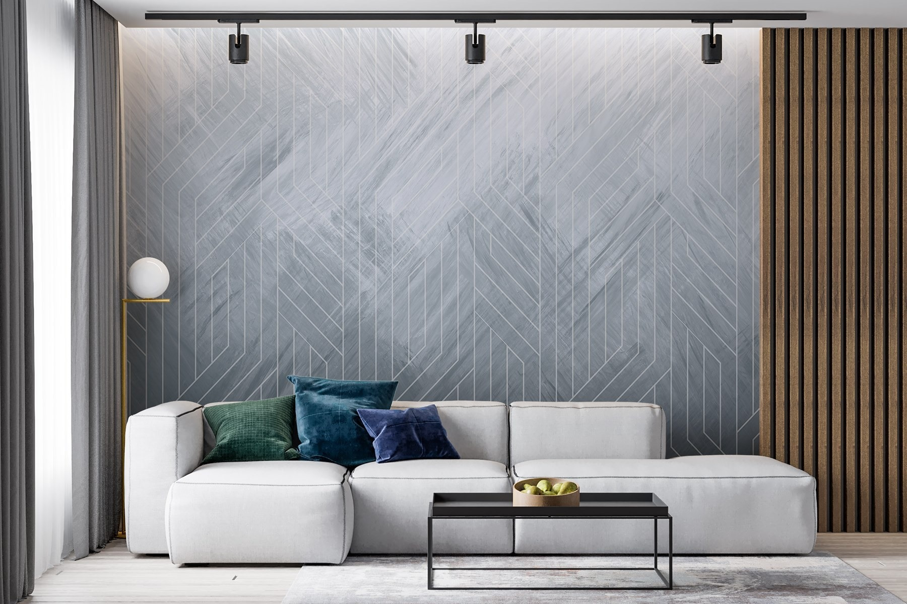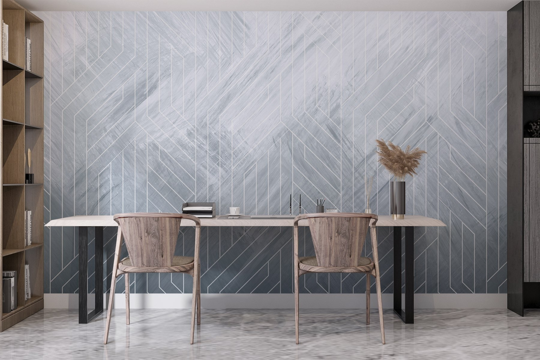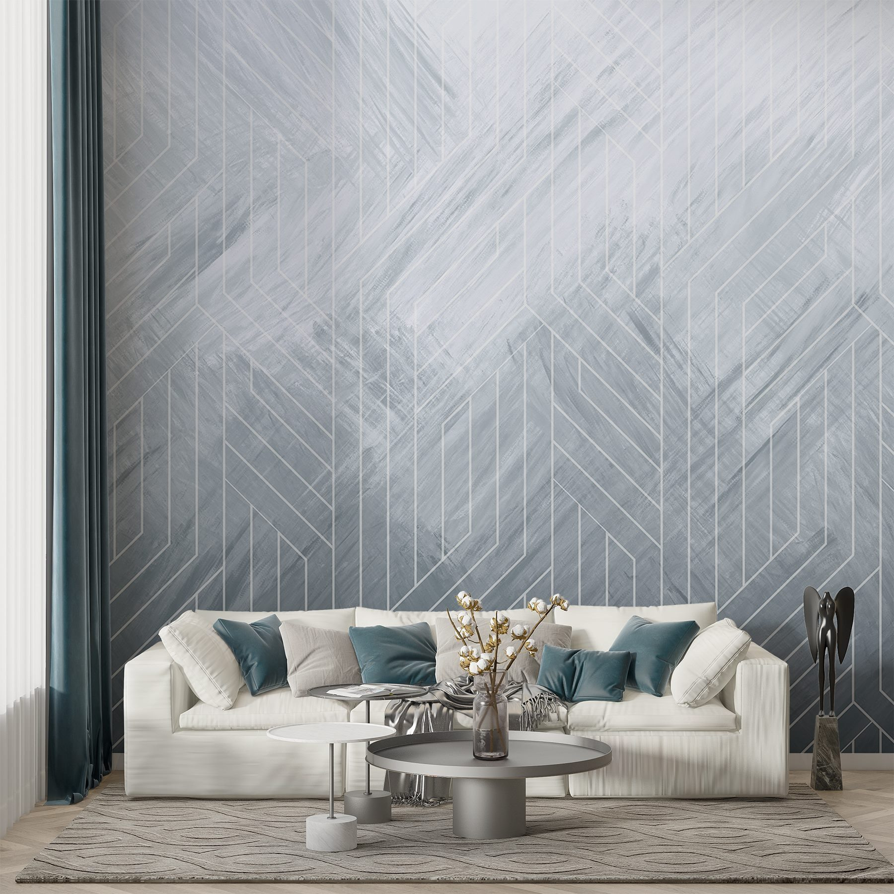 Proměna prostoru pomocí “Nástěnné malby Bílé čáry na šedém povrchu” je jako jemné objetí. Tato okouzlující nástěnná malba kombinuje eleganci s trochou moderního vkusu – představte si útulné kavárenské vibrace smíšené s atmosférou umělecké galerie. Čisté linie tancují v různých odstínech šedé a vytvářejí klidnou atmosféru, která přesto nějakým způsobem vzbuzuje trochu vzrušení.