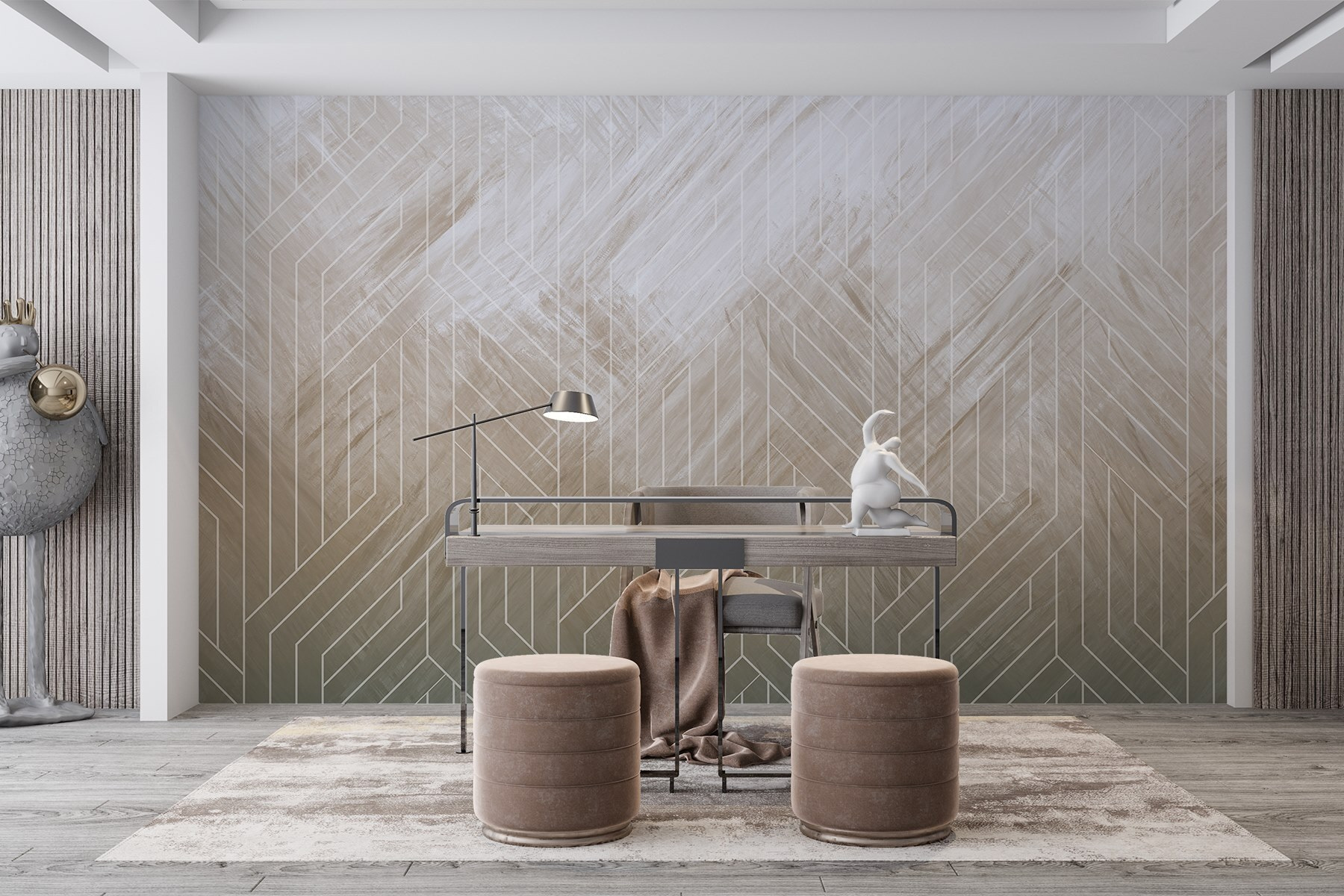 Představte si, že vstoupíte do místnosti a máte pocit, že jste právě vstoupili do klidné umělecké galerie. Tato nástěnná malba “Nástěnné malby Bílé čáry na bílé ploše” přináší závan čerstvého vzduchu díky svým jemným abstraktním vibracím. Plynulé textury a jemné bílé linie tančí po povrchu a vytvářejí klidnou a zároveň zajímavou atmosféru. Jako by zeď říkala: “Ahoj, jsem tady, ale nebudu krást show.” Je to tak, jako kdybyste se na ni dívali. Ideální pro každého, kdo chce jemné pozadí, které podněcuje představivost a konverzaci. Představte si útulné večery s šálkem čaje v ruce, jak obdivujete tuto stěnu – nechte své myšlenky bloudit. Je uklidňující, povzbuzující a tak trochu tajemná!