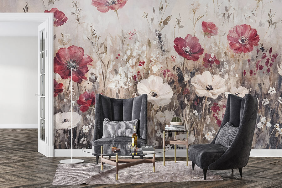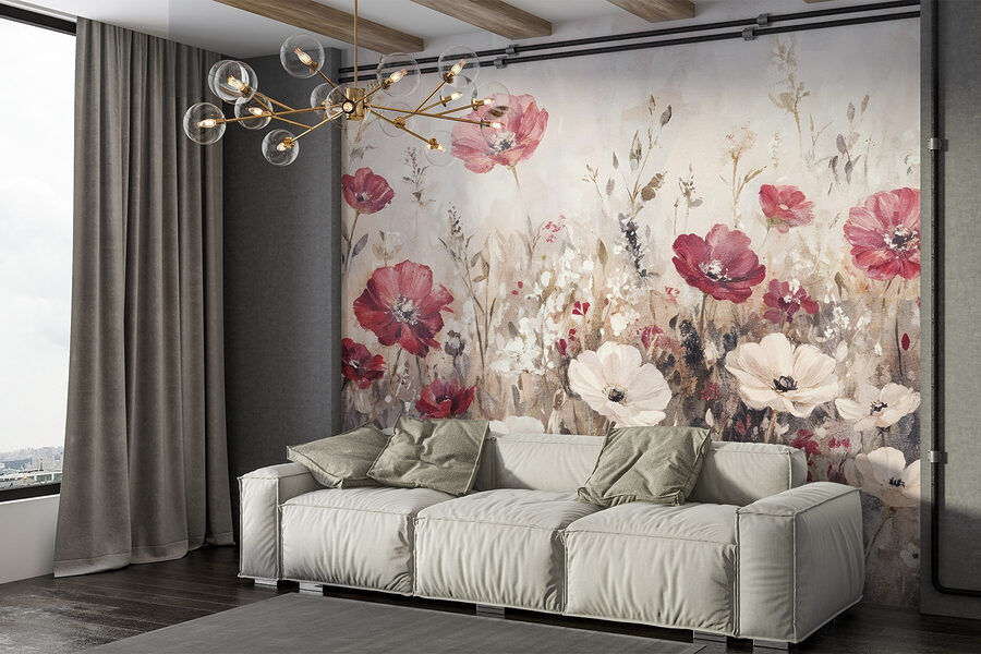 S touto úžasnou nástěnnou malbou květin tančících ve větru proměníte každou místnost v klidné útočiště. Představte si to: sluneční paprsky proudí dovnitř a tyto krásné květy v jemné červené a bílé barvě se kaskádovitě rozlévají po stěně jako umělecké dílo přírody. Je to jako přenést svěží jarní den do interiéru – samozřejmě bez otravného pylu! Tato akvarelová nástěnná malba se skvěle hodí do útulného obývacího pokoje nebo uklidňujícího útočiště v ložnici. Představte si, jak se s knihou opíráte do křesla obklopeni touto přírodní krásou. Okamžité zlepšení nálady, že? Vaše stěna už není jen stěna, ale rozkvetlý ráj.