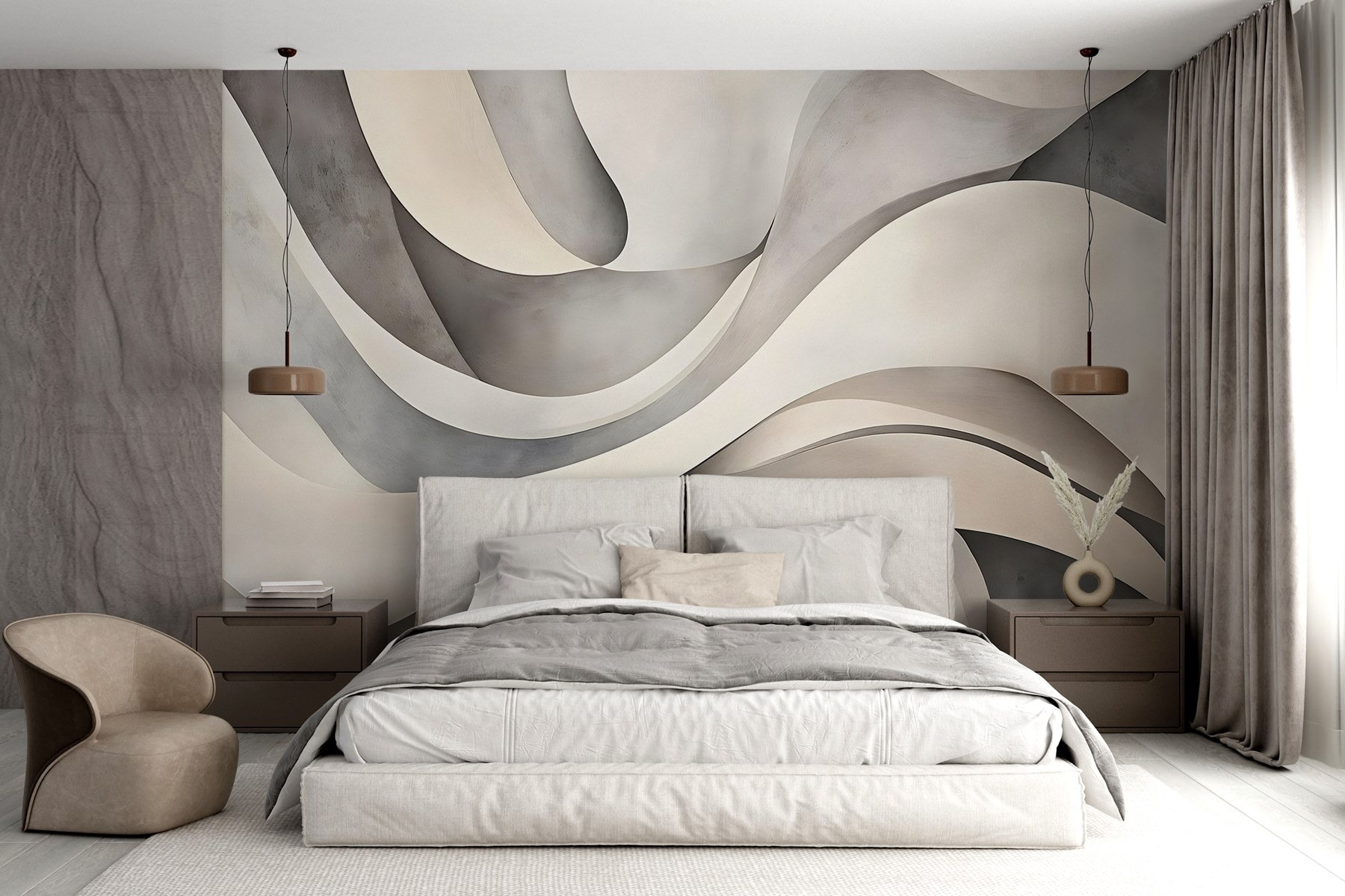 Proměňte každou místnost v uklidňující útočiště pomocí této úžasné nástěnné malby “Bílé a šedé zvlněné tvary”. Představte si ji – jemný tanec elegantních vln v uklidňujících neutrálních tónech, ideální pro rozproudění radosti nebo jen pro pozvání na čerstvý vzduch. Působí jako jemné objetí pro vaše stěny, které zútulní zákoutí, aniž by zahltilo prostor. Představte si, že popíjíte ranní kávu, očima bloudíte po těchto splývavých tvarech a prostě… relaxujete. Je to skoro jako snění. Tato nástěnná malba, ideální pro moderní domovy, našeptává sofistikovanost a zároveň udržuje pohodu bez námahy. Přineste si domů trochu klidu!