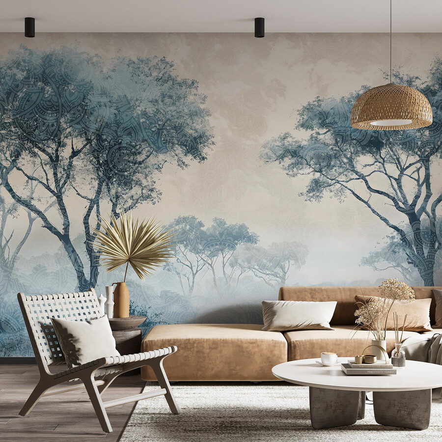 Proměňte svůj prostor díky klidnému kouzlu této nástěnné malby “Mlžná krajina se stromy a rostlinami”. Představte si to: měkké, zasněné barvy vytvářející příjemnou atmosféru, která našeptává klid. Je to, jako by se přímo na vaší zdi převalovala jemná mlha. Svěží stromy stojí vysoko a téměř lákají ke klidné procházce skrytým lesem. Představte si, že popíjíte čaj nebo kávu a máte pocit, že jste vstoupili do klidného útočiště. Jemné detaily listů dodávají dotek sofistikovanosti – ideální do každé místnosti. Není to jen dekorace, je to zážitek. Kdo by se nechtěl probudit do tak uklidňující scény?