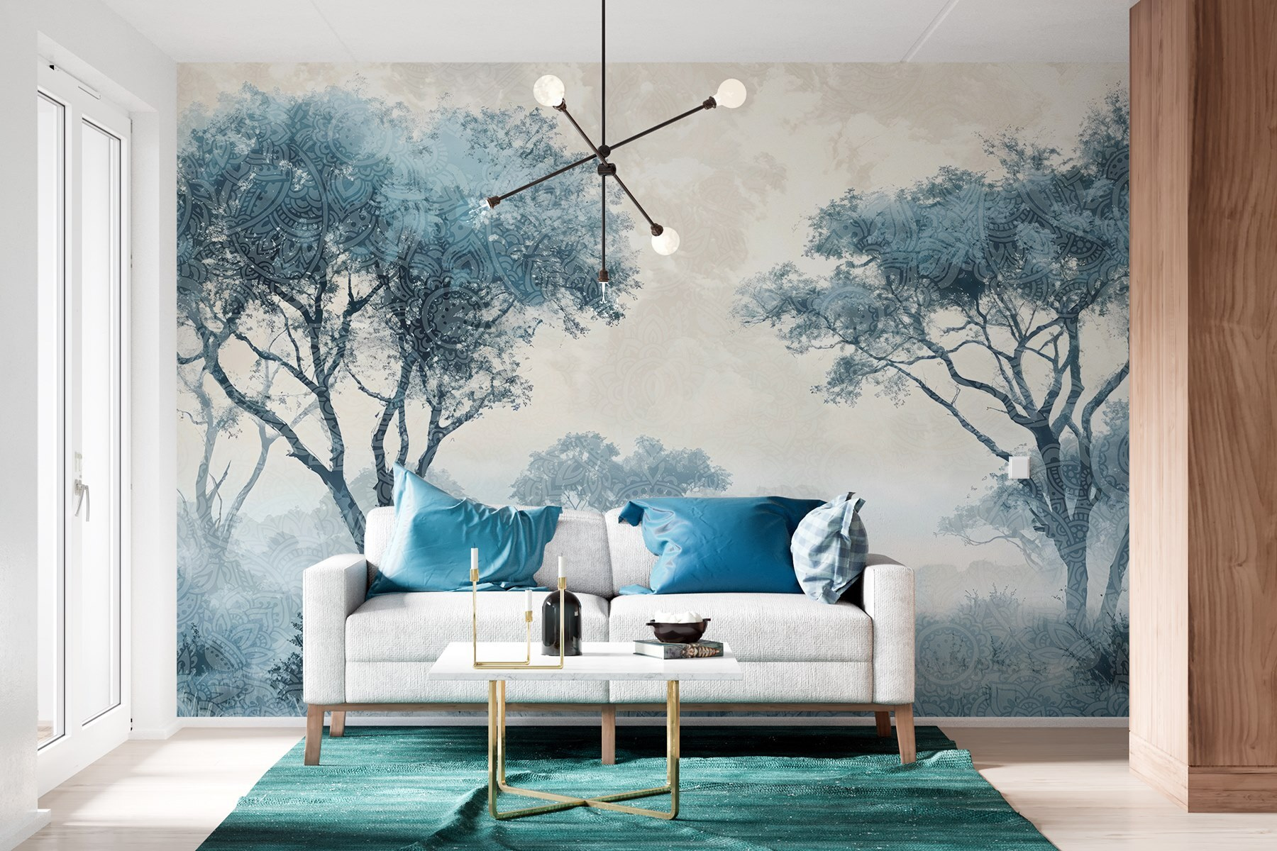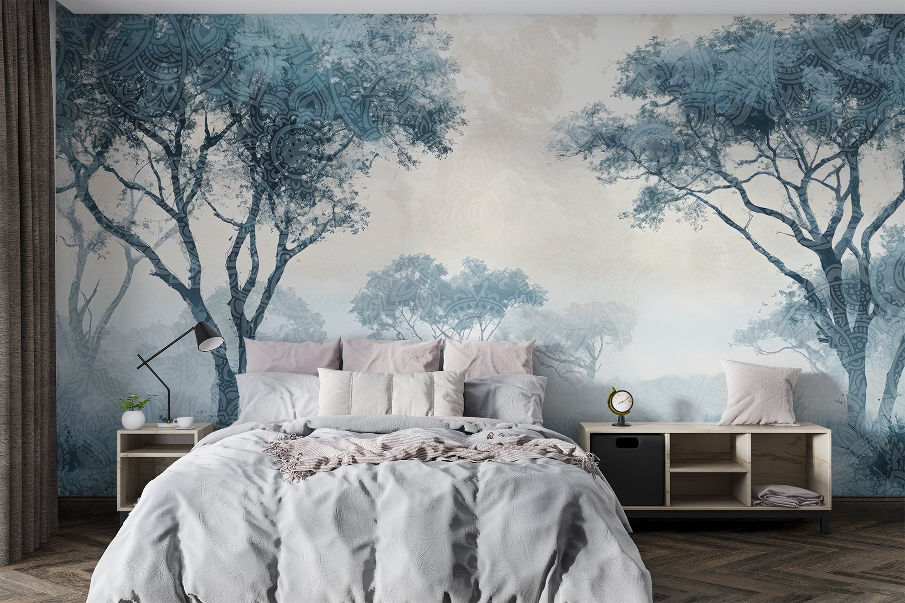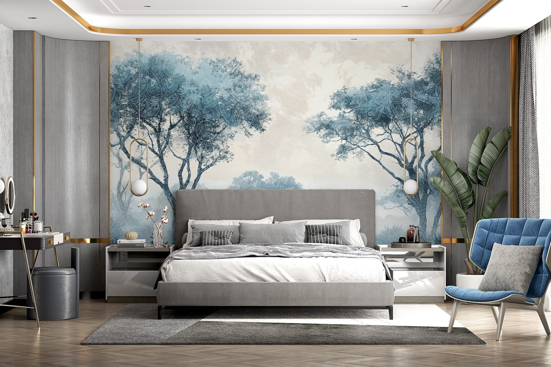 Proměňte svůj prostor díky klidnému kouzlu této nástěnné malby “Mlžná krajina se stromy a rostlinami”. Představte si to: měkké, zasněné barvy vytvářející příjemnou atmosféru, která našeptává klid. Je to, jako by se přímo na vaší zdi převalovala jemná mlha. Svěží stromy stojí vysoko a téměř lákají ke klidné procházce skrytým lesem. Představte si, že popíjíte čaj nebo kávu a máte pocit, že jste vstoupili do klidného útočiště. Jemné detaily listů dodávají dotek sofistikovanosti – ideální do každé místnosti. Není to jen dekorace, je to zážitek. Kdo by se nechtěl probudit do tak uklidňující scény?
