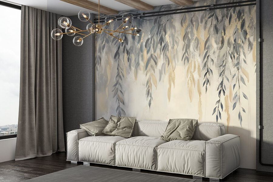 Proměňte jakýkoli prostor pomocí této úchvatné nástěnné malby “Nástěnná malba větve stromu”. Představte si, že vejdete do místnosti a přivítají vás jemné, kaskádovité listy v jemných šedých a teplých tónech. Je to jako přenést do interiéru klidnou zahradu, bez otravných brouků! Tento akvarelový design je ideální pro každého, kdo touží po doteku přírody bez údržby.