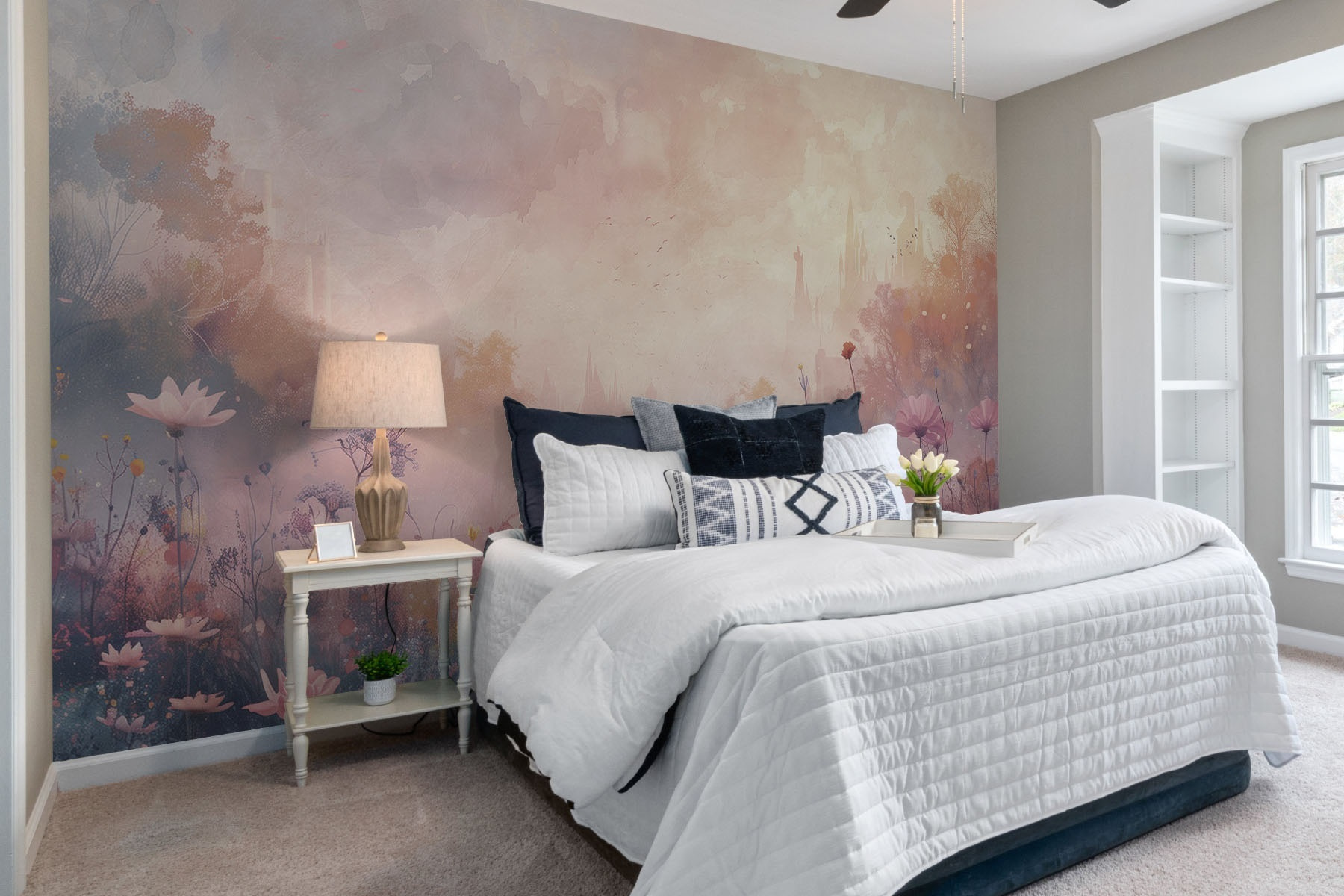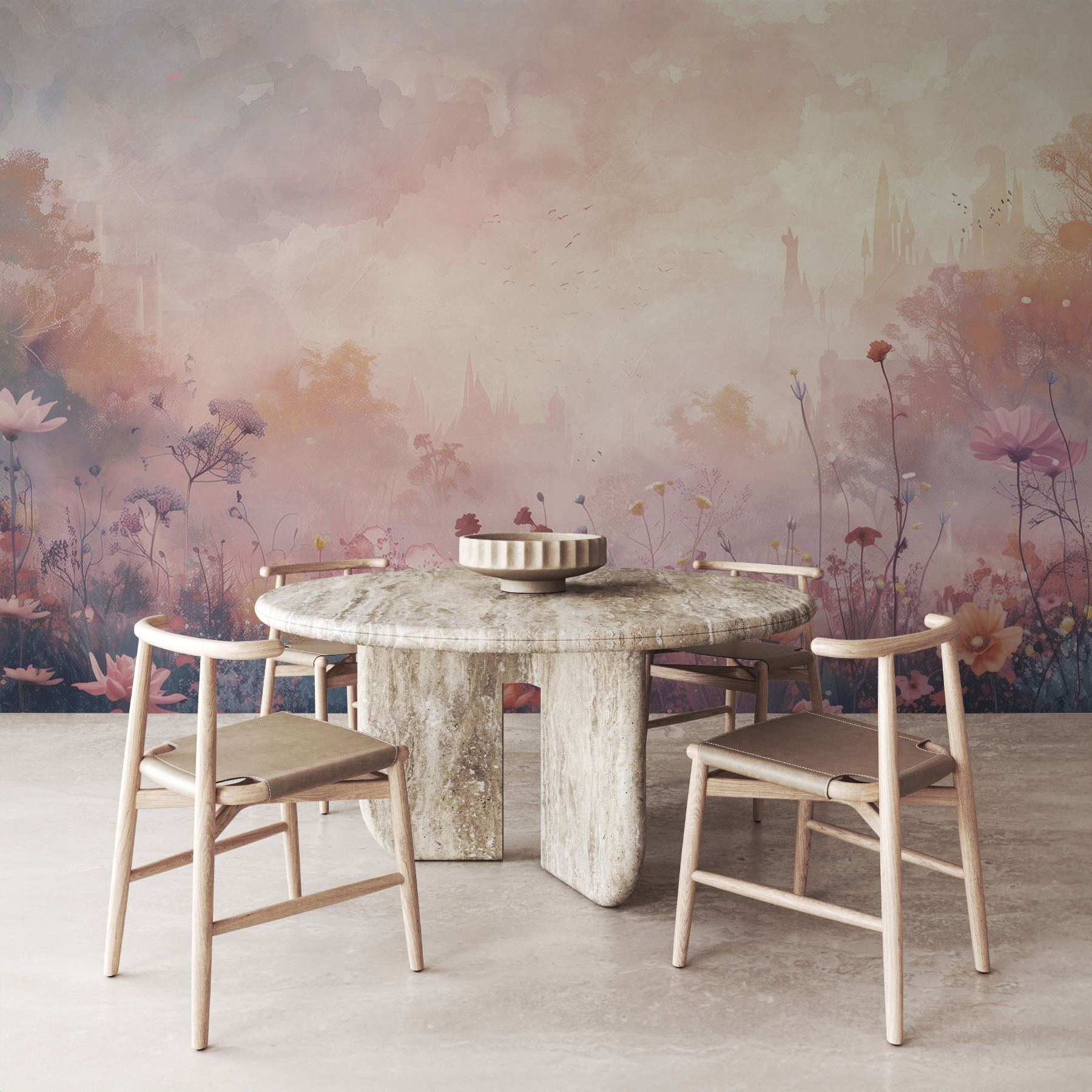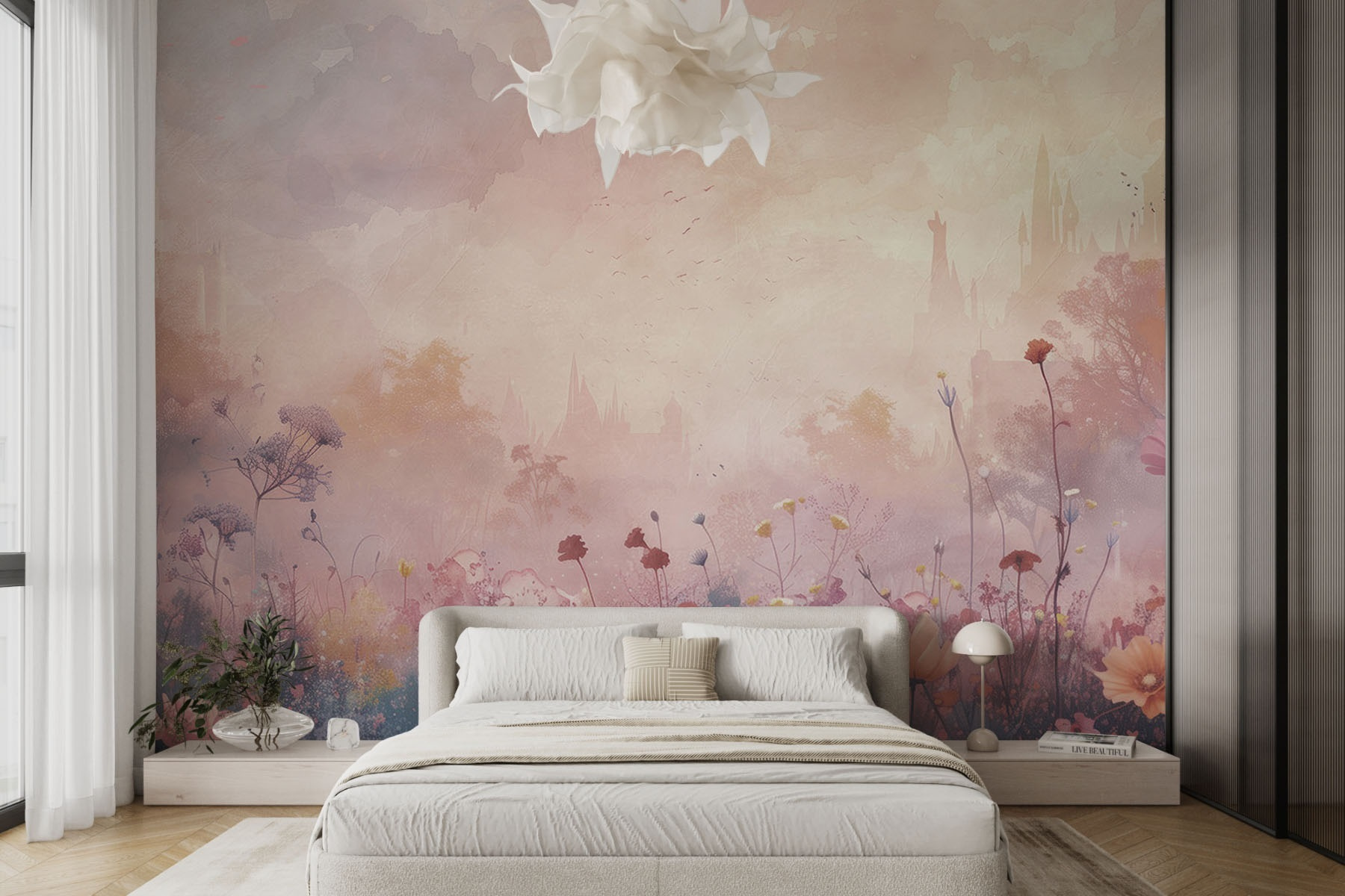 Proměňte svůj prostor pomocí této zasněné nástěnné malby s polem rozkvetlých květin na pozadí rozmarného hradu. Představte si, že vstoupíte do klidné zahrady, kde každý okvětní lístek vypráví příběh a jemné odstíny šeptají klid. Je to jako přenést kousek přírody do interiéru – aniž byste potřebovali zelený palec. Tato nástěnná malba, která se skvěle hodí do útulného zákoutí nebo živé herny, vybízí ke snění a nenucenému povídání o oblíbených pohádkách. Jen si to představte: uvelebení s dobrou knihou, obklopeni živými květy a náznakem dobrodružství, které čeká hned za hradbami hradu.