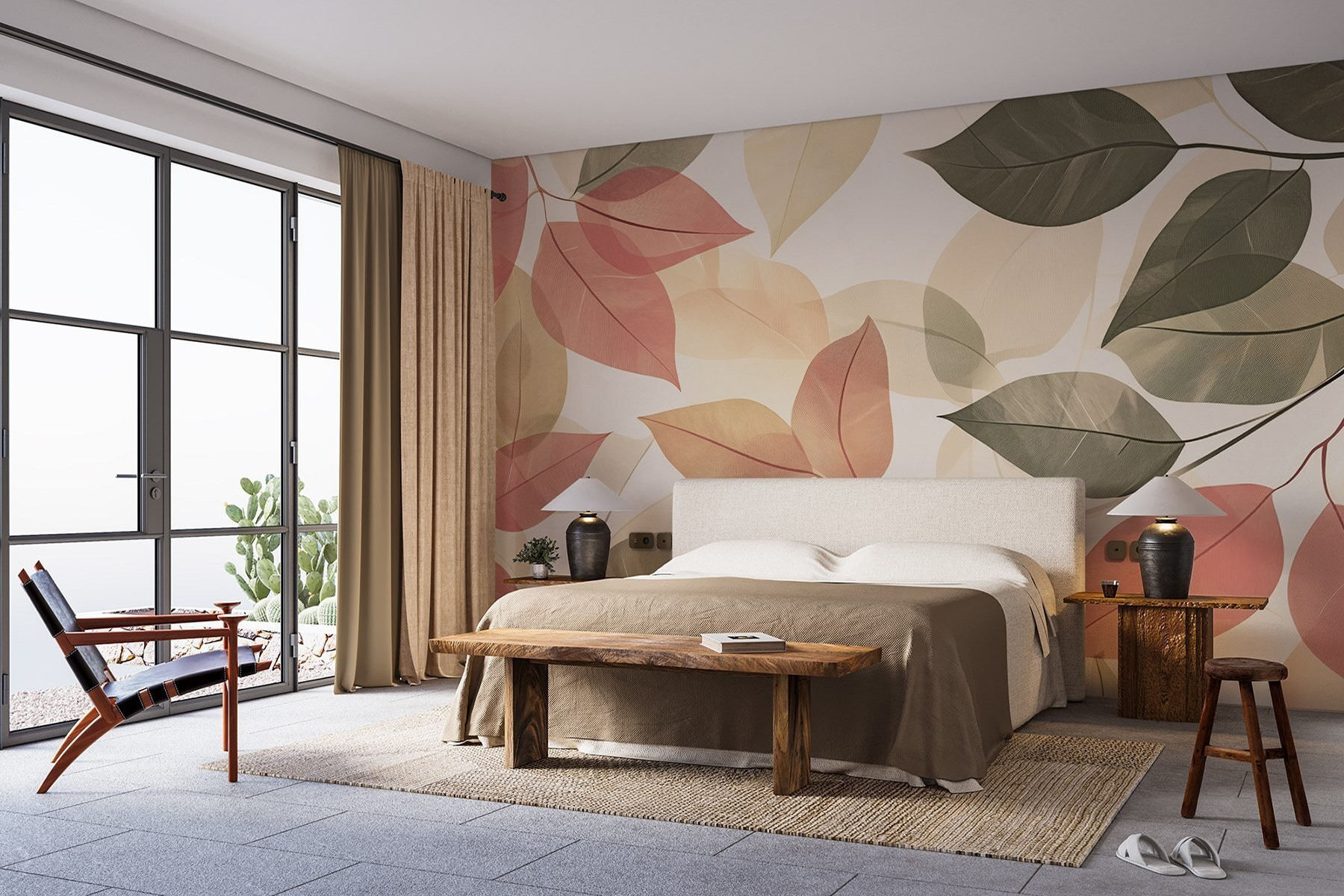 Proměňte nudnou stěnu v uklidňující únik pomocí této nástěnné malby “Jemné odstíny krásy přírody”. Představte si to: vstoupíte do místnosti a bum! Přivítá vás jemný tanec listů v tlumených růžových a zelených barvách, který evokuje klid lesní procházky. Je to jako přenést kousek venkovní přírody dovnitř bez otravného hmyzu. Cítíte, jak se váš stres rozplývá, když vás tyto měkké odstíny obklopí a vytvoří útulnou, příjemnou atmosféru. Tato nástěnná malba, která se skvěle hodí do čtecího koutku nebo klidné ložnice, není jen dekorací – pomůže vám lépe dýchat. Představte si, jak se choulíte s šálkem čaje obklopeni jemným dotekem přírody. Kdo by řekl, že stěny mohou být tak živé?