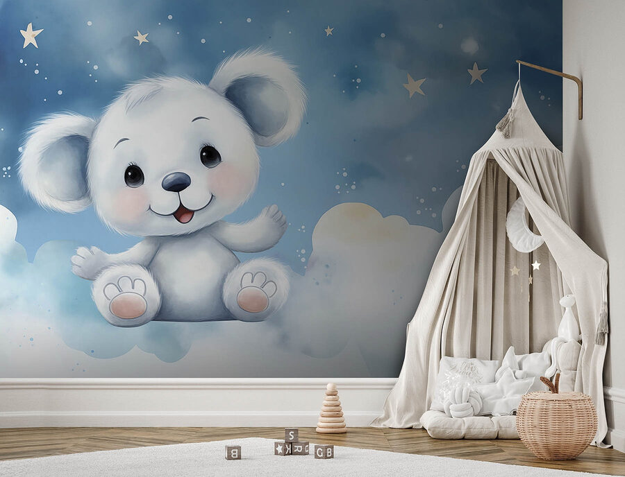 Proměňte jakýkoli prostor pomocí nádherné nástěnné malby “Karikatura bílého medvěda”. Představte si tohoto roztomilého chlapíka, jak mává ze svého nadýchaného obláčku a je připraven rozprašovat radost po místnosti. Tato fototapeta, která se skvěle hodí do dětských pokojů, dětských pokojíčků nebo dokonce do útulných čtecích koutků, vás unese do snové země, kde vládne fantazie. Je to jako ten pocit hřejivého objetí po dlouhém dni – uklidňující a sladký. Jemná modrá a něžná bílá vytvářejí klidné pozadí, takže máte pocit, že medvěd je stále tam a dohlíží na vás. Mluvíme o okamžitém kouzlu! S touto nástěnnou malbou může každý pohled vyvolat úsměv nebo hloupý příběh. Proč nenechat tohoto roztomilého medvěda střežit vaše sny?