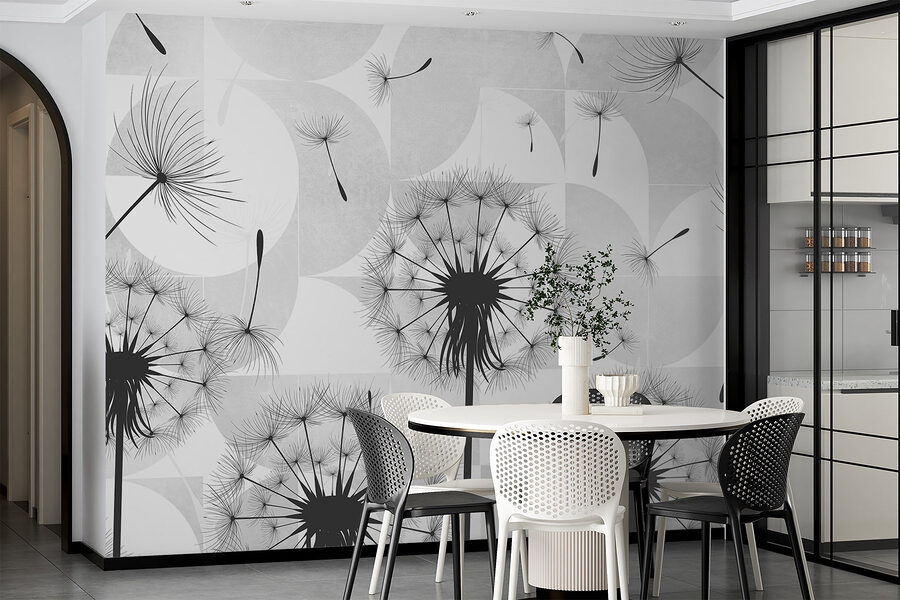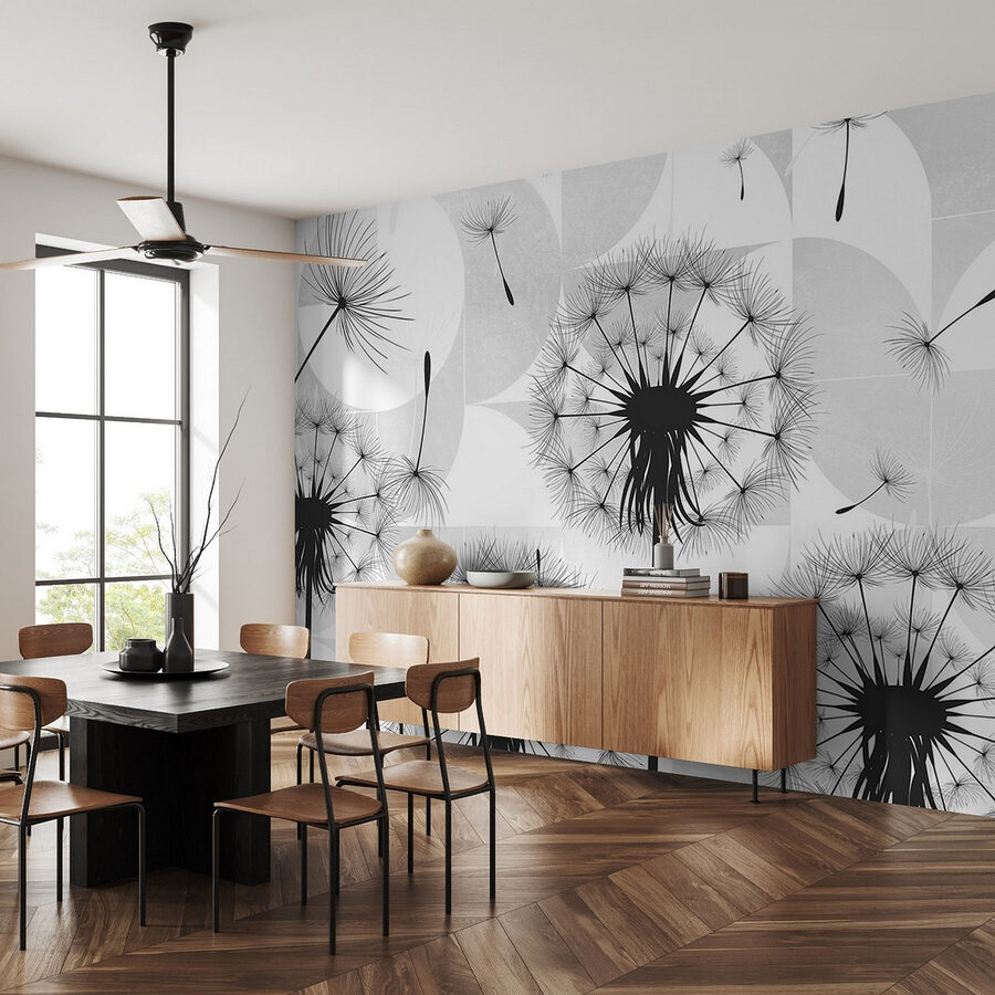Proměňte nudnou stěnu ve snový únik pomocí této úžasné nástěnné malby černých semínek pampelišek tančících ve vzduchu. Jako byste si do interiéru přinesli kousek přírody! Představte si, že popíjíte ranní kávu, zatímco se nad vámi vznášejí tato jemná semínka a vyvolávají v vás myšlenky na přání a slunečné dny. Tato nástěnná malba není pouhým dekoračním prvkem, ale vypráví příběh, který do vašeho prostoru vnese pocit klidu a rozmarnosti. Elegantní kontrast černé a bílé barvy vytváří moderní atmosféru, takže se skvěle hodí do každé místnosti. Kdo ví? Možná právě inspiruje pár snů!