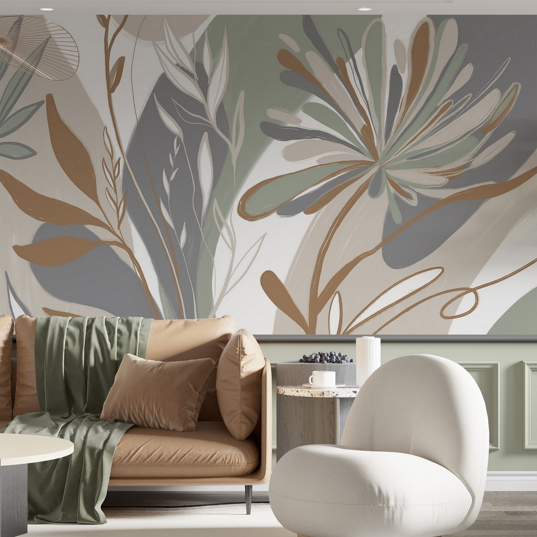 S touto nástěnnou malbou s jemnými vzory v jemných barvách je proměna prostoru mnohem zábavnější. Představte si, že vstoupíte do místnosti, kde vás jemná zelená a uklidňující hnědá obklopí jako příjemná deka. Je to jako přenést do interiéru klidnou zahradu bez otravného pylu. Každý tah vypráví příběh o klidné kráse přírody, ideální pro ty, kteří ve svém interiéru ocení trochu rozmarnosti. Ať už se jedná o obývací pokoj nebo zasněnou ložnici, tato nástěnná malba vytváří příjemnou atmosféru, vyvolává radost a možná i trochu snění. Je ideální pro dodání tepla a nádechu kreativity na jakoukoli stěnu a možná se vám bude chtít sednout si s šálkem čaje a vychutnávat si ten výhled. Kdo by řekl, že stěna může vyvolat tolik radosti, že?