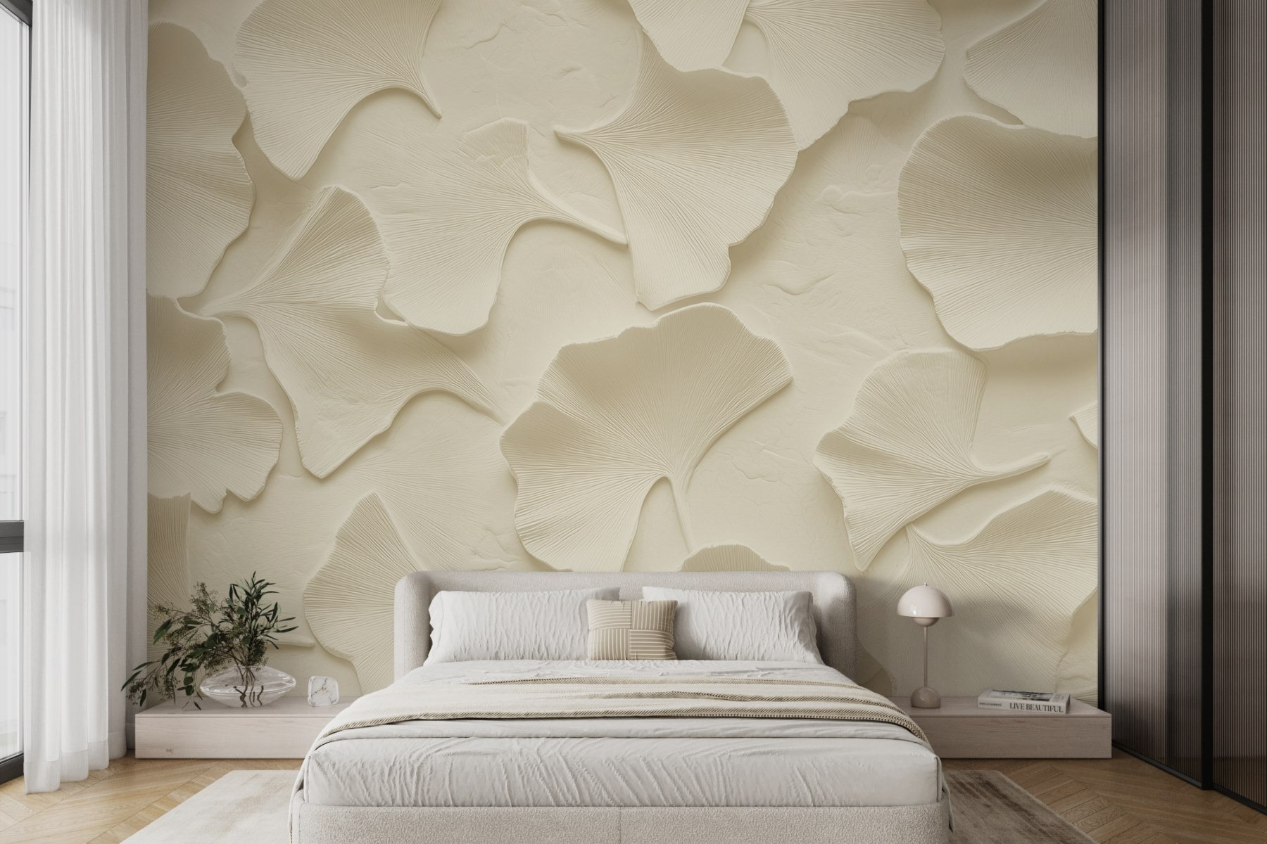 Proměňte jakýkoli prostor pomocí této úžasné nástěnné malby “Skupina bílých listů”. Představte si, že vejdete do místnosti a okamžitě se cítíte klidně, jako byste právě vstoupili do klidného lesa. Tyto jemné listy jemně tančí po vašich stěnách a navozují pocit přírody, který je osvěžující a uklidňující zároveň.
