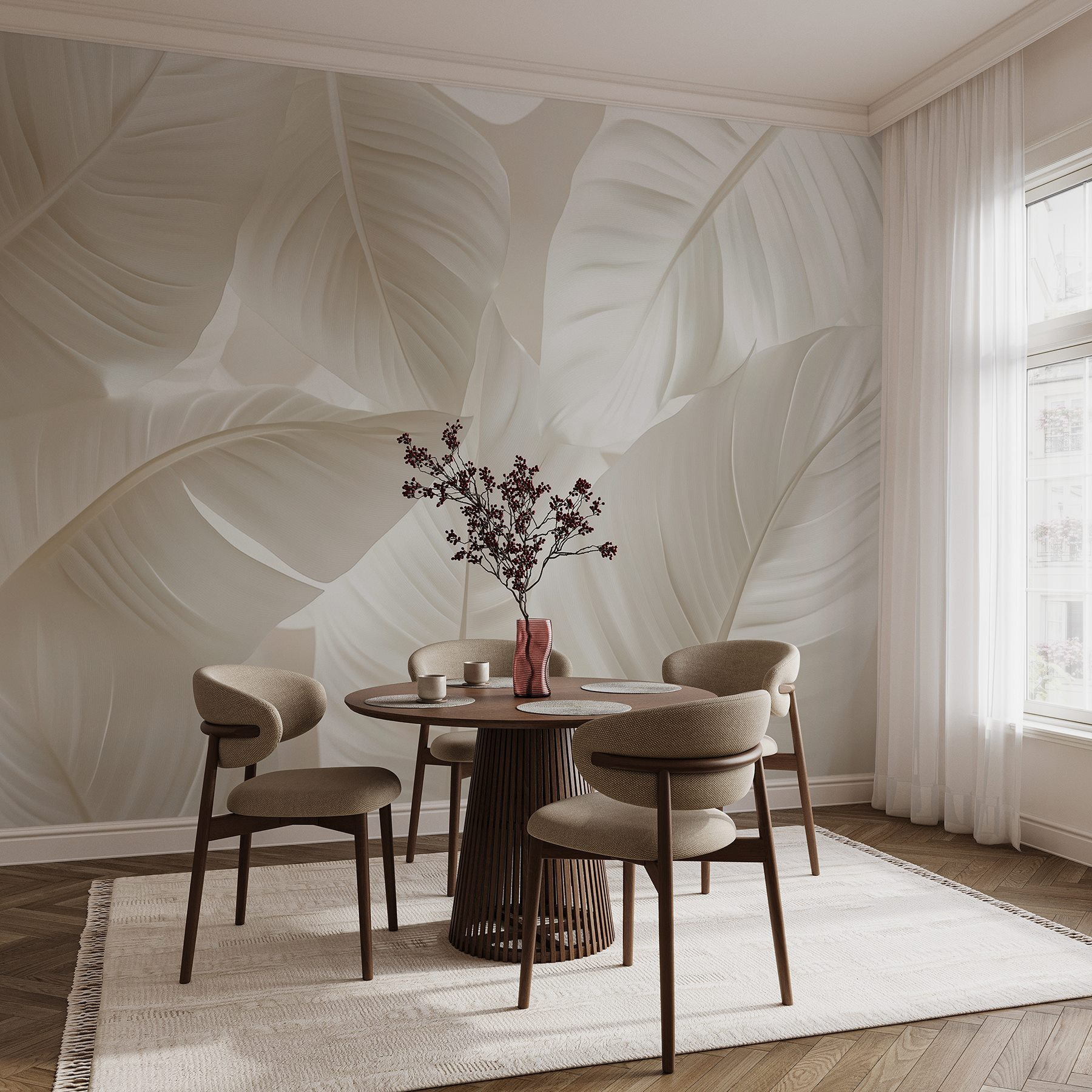 Proměna prostoru může připomínat malou dovolenou a tato nástěnná malba s jemnými a elegantními vzory listů vás odvede do klidného tropického prostředí. Představte si, že vejdete do místnosti a okamžitě se uklidníte – jako byste se nadechli čerstvého vzduchu. Tyto jemné vzory listů našeptávají relaxaci a jsou ideální pro útulný čtecí koutek nebo živý obývací pokoj. Ať už je slunečný nebo deštivý den, tato nástěnná malba vytvoří hřejivou a příjemnou atmosféru. Je to způsob, jakým příroda říká: “Zůstaňte chvíli, zvedněte si nohy.”. Takže si vezměte šálek čaje, nechte se unášet listnatými vibracemi a užívejte si tu krásu!