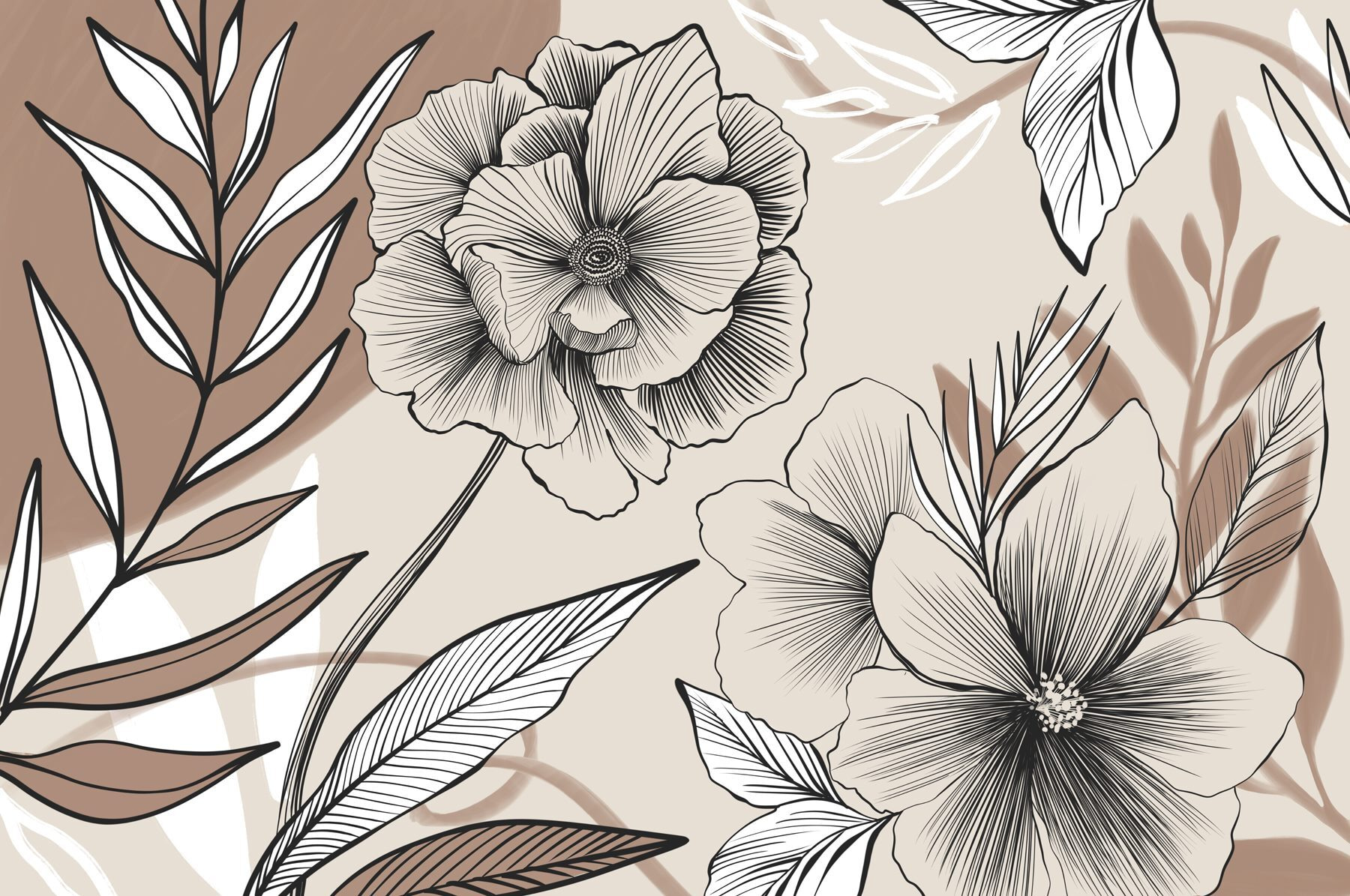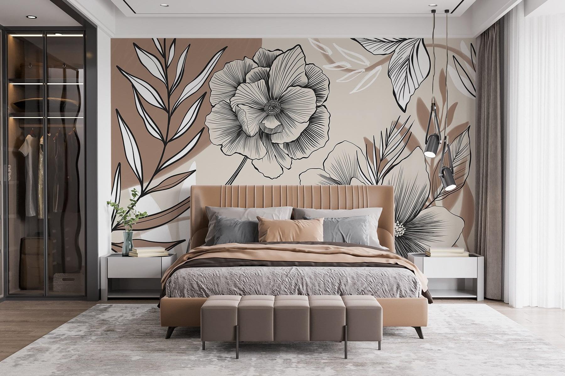 Proměňte svůj prostor pomocí nástěnné malby “Květinová elegance v černé a bílé”. Představte si, že vejdete do místnosti, kde po stěnách hravě tančí úžasné květy. Výrazný kontrast černých a bílých květin v kombinaci s jemnými zemitými tóny vytváří elegantní atmosféru, která působí moderně a zároveň útulně. Je to jako přenést zahradu do interiéru bez zalévání!