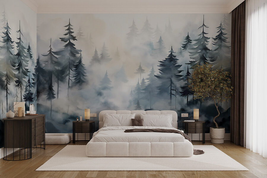 Proměňte jakýkoli prostor pomocí této okouzlující nástěnné malby “Nástěnná malba stromů a mlhy”. Budete mít pocit, že jste vstoupili do klidného lesa, kde se kolem vysokých stromů ovíjí jemná ranní mlha. Představte si, jak při pohledu na tento snový výjev popíjíte kávu, což je dokonalý způsob, jak uniknout každodenní rutině, aniž byste museli opustit svůj domov. Není to jen dekorace, je to nálada. Tato nástěnná malba přináší do interiéru dotek přírody a vytváří uklidňující atmosféru, která našeptává relaxaci. Perfektně se hodí do útulného čtecího koutku nebo do klidné ložnice a vybízí ke snění a troše dobrodružství. Kdo by nechtěl mít kousek lesa přímo na zdi?