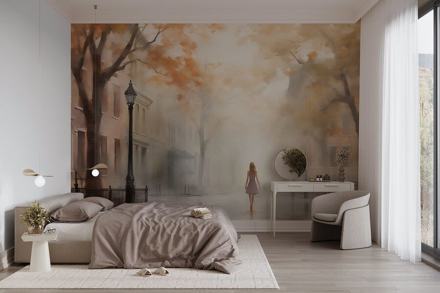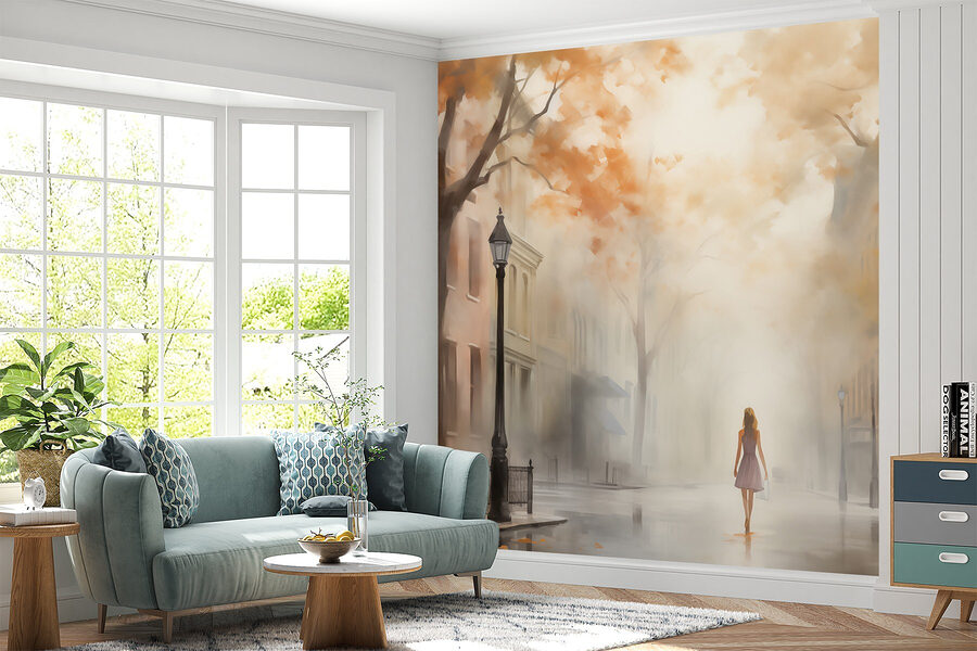 Představte si to: žena se prochází mlhavou ulicí zahalená do teplých barev podzimu. Tato nástěnná malba není jen uměním, je to brána do zasněného úniku. Představte si, že rozzáří váš obývací pokoj nebo útulnou ložnici a přitáhne každého, kdo ji zahlédne. Mlha vytváří pocit tajemství, takže každý pohled je jako dobrodružství. Navíc ta nostalgická atmosféra? Ideální pro večery strávené vzpomínáním nebo plánováním dalšího útěku. Je to jako pozvat klidný kousek městského života přímo k vám domů, jeden snový krok za druhým – taková atmosféra!