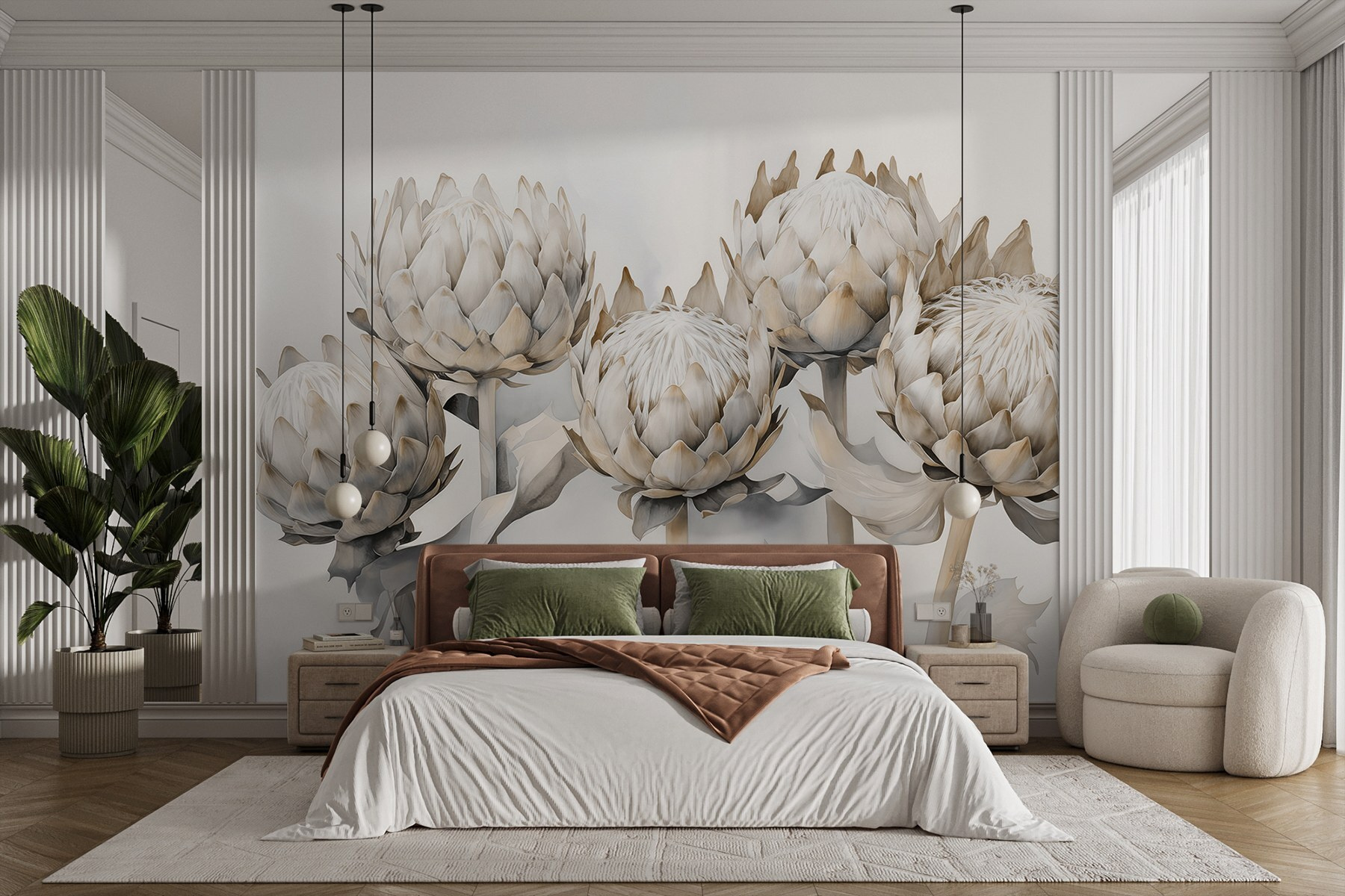 Proměňte svůj prostor pomocí této úžasné nástěnné malby s okouzlující skupinou artyčoků. Představte si, že vstoupíte do svého pokoje a přivítají vás tyto hravé zeleniny, téměř jako by pořádaly svou vlastní malou zahradní party. Díky jemným odstínům a detailním listům působí svěže a zároveň klidně, což je ideální pro rozproudění radosti. Je to jako mít v interiéru kousek přírody bez zálivky a otravných brouků! Ať už se nachází v jídelně nebo v útulném koutku, tato nástěnná malba našeptává eleganci a rozmar. Kdo by mohl říct ne takovému rozkošnému začátku konverzace? Pověste ji a nechte ty artyčoky mluvit!