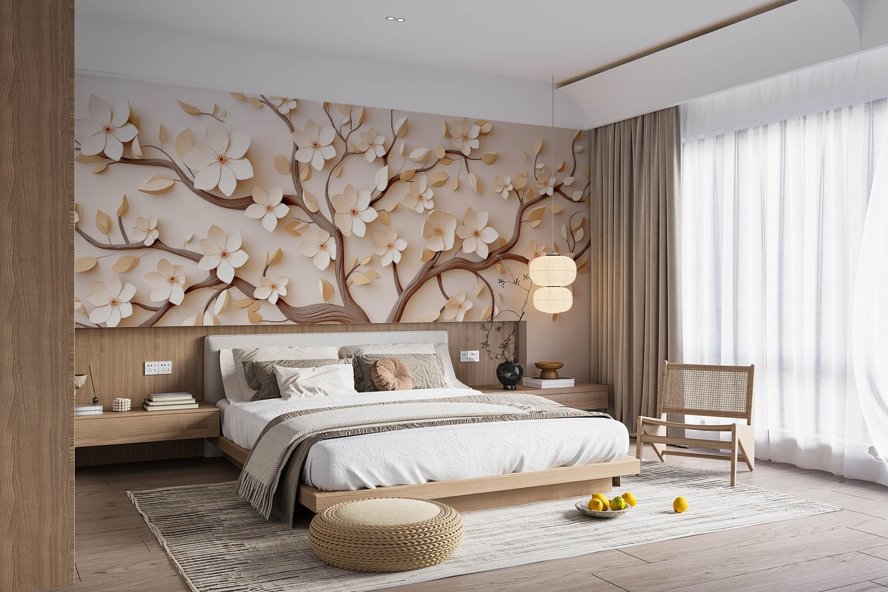 Proměňte jakýkoli prostor pomocí této nádherné nástěnné malby s krásným stromem zdobeným květinami. Představte si, že přímo z obývacího pokoje vstoupíte do klidné japonské zahrady. Jemné barvy a půvabné linie vybízejí k uklidňující atmosféře, díky níž budete chtít popíjet čaj a celé hodiny snít. Ideální pro útulný koutek nebo jídelní kout, dodá dotek přírody bez všech otravných pylů. Ať už hostíte přátele, nebo si užíváte klidný večer o samotě, tato nástěnná malba vyvolává radost a konverzaci. Je to jako pozvat do svého domova jemný vánek – kdo by to nechtěl?