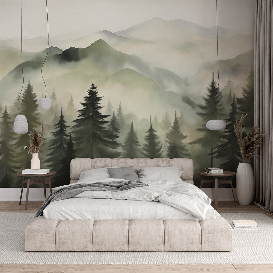 Proměňte svůj prostor pomocí této okouzlující nástěnné malby “Mlžné pohoří se stromy”. Představte si, že se probouzíte s jemnými odstíny mlžných hor přímo na své zdi. Je to jako vstoupit do klidného úniku! Jemná souhra mlhy a vzrostlých stromů přináší klidnou atmosféru, která je ideální pro útulný obývací pokoj nebo uklidňující útočiště v ložnici. Přátelé se vás možná dokonce zeptají, jestli jste byli na horách! Vzhled dřeva dodává nádech rustikálního kouzla – ideální pro milovníky přírody. Nechte tuto nástěnnou malbu zahalit váš domov do klidu a jemného šepotu divočiny. Jen si nezapomeňte uvařit čaj; budete ho chtít popíjet, zatímco se budete kochat tímto krásným výhledem!