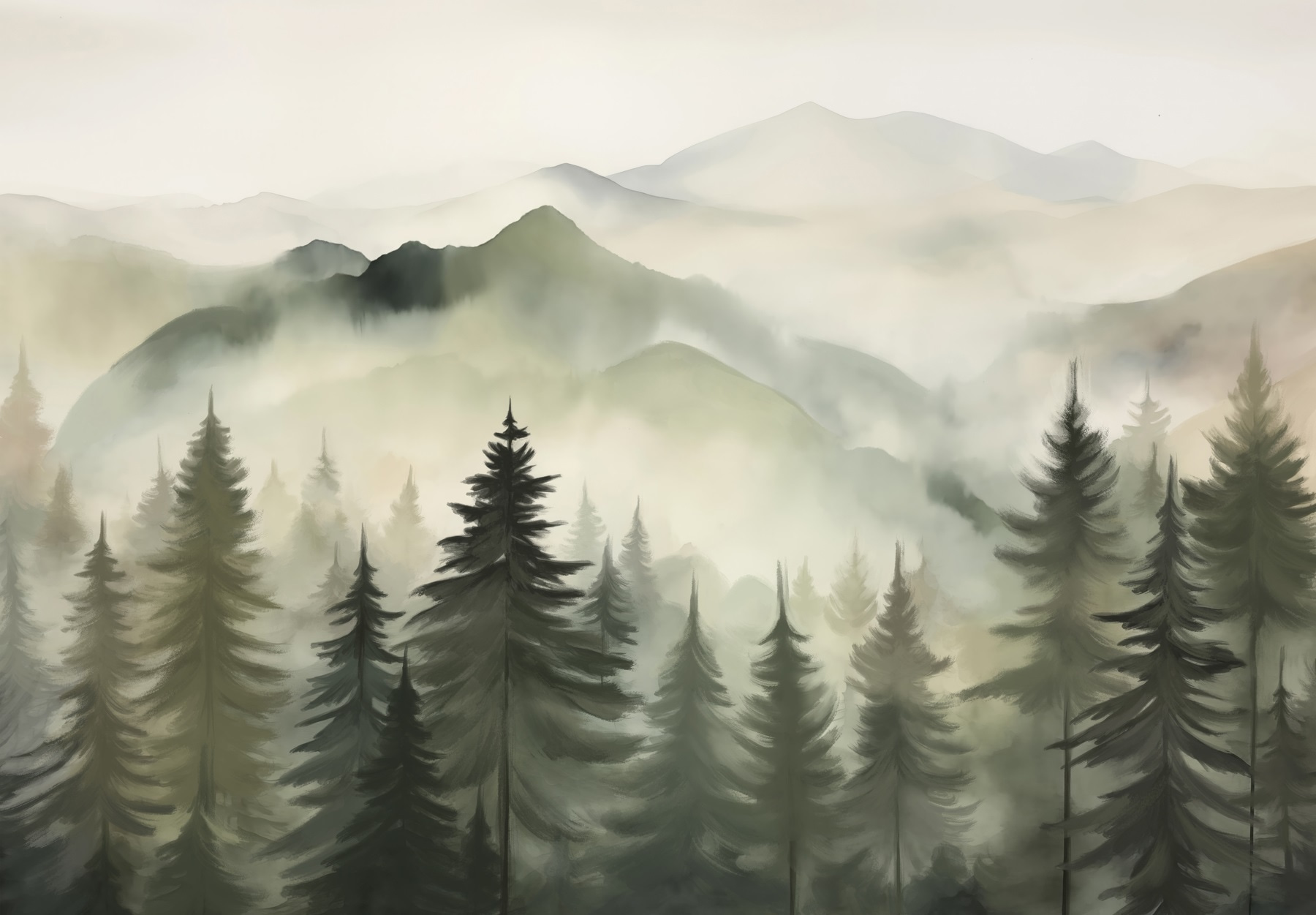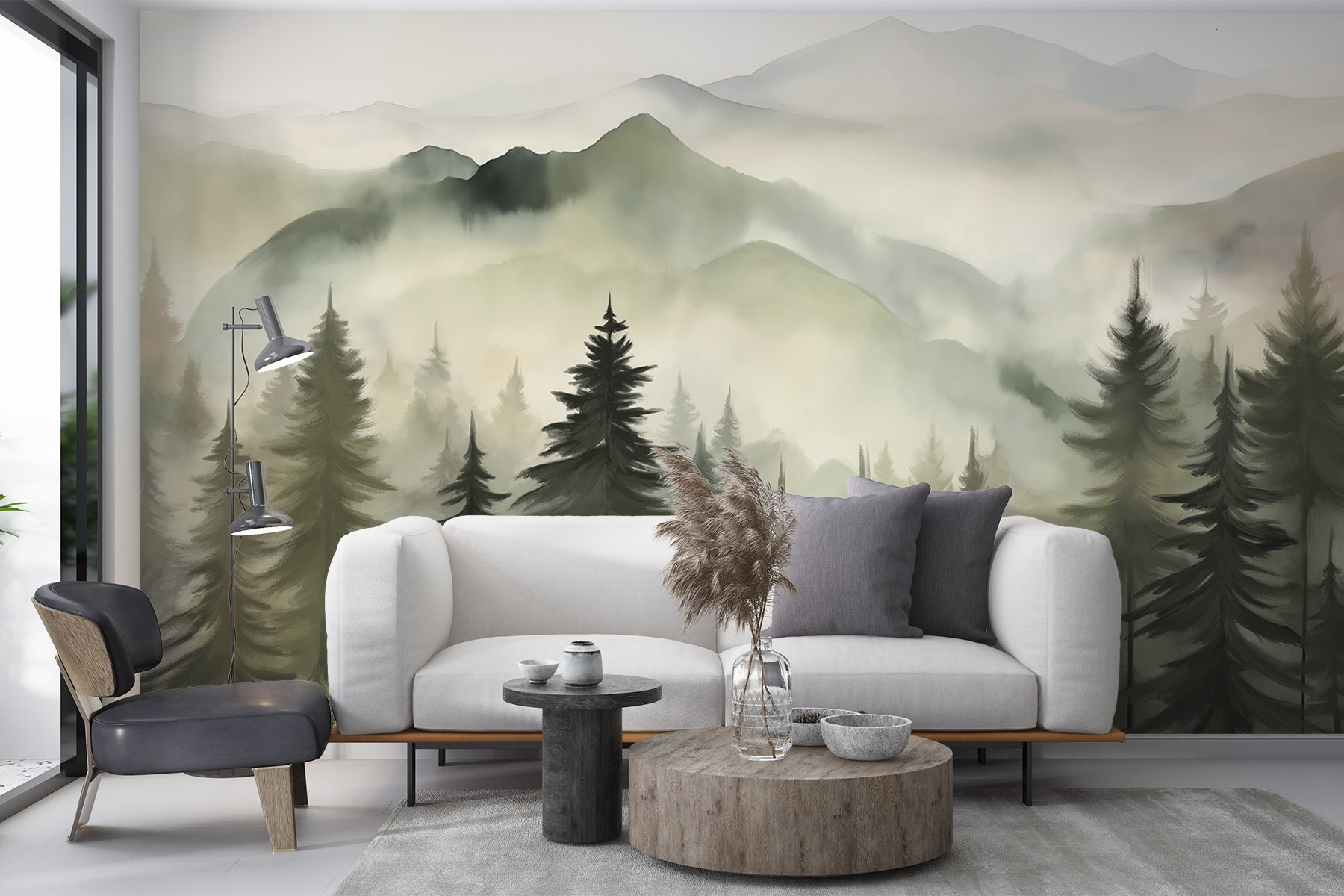 Proměňte svůj prostor pomocí této okouzlující nástěnné malby “Mlžné pohoří se stromy”. Představte si, že se probouzíte s jemnými odstíny mlžných hor přímo na své zdi. Je to jako vstoupit do klidného úniku! Jemná souhra mlhy a vzrostlých stromů přináší klidnou atmosféru, která je ideální pro útulný obývací pokoj nebo uklidňující útočiště v ložnici. Přátelé se vás možná dokonce zeptají, jestli jste byli na horách! Vzhled dřeva dodává nádech rustikálního kouzla – ideální pro milovníky přírody. Nechte tuto nástěnnou malbu zahalit váš domov do klidu a jemného šepotu divočiny. Jen si nezapomeňte uvařit čaj; budete ho chtít popíjet, zatímco se budete kochat tímto krásným výhledem!