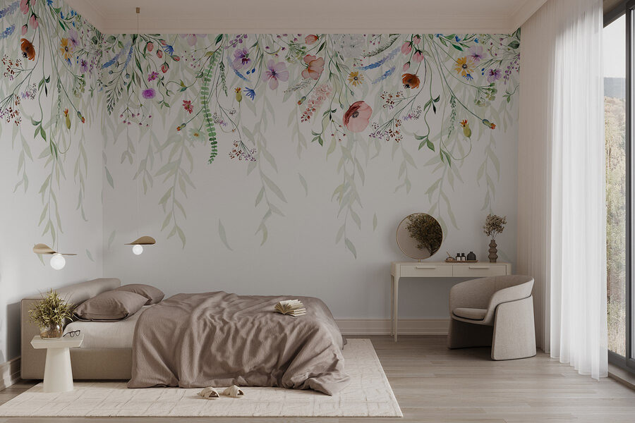 Proměňte své stěny pomocí této úžasné akvarelové nástěnné malby s okouzlující kaskádou květin a listů. Je to jako přenést dotek přírody přímo dovnitř – představte si líná nedělní rána s útulným šálkem kávy, obklopeni jemnými květy. Jemné barvy a splývavý design vytvářejí uklidňující atmosféru, která je ideální pro každou místnost toužící po troše osobitosti. Představte si, že hostíte přátele a sledujete, jak se jim rozzáří oči, když obdivují toto nádherné pozadí. Je to jednoduchý způsob, jak dodat vašemu prostoru pocit svěžesti a přívětivosti. Navíc, kdo by neměl rád trochu květinového kouzla?