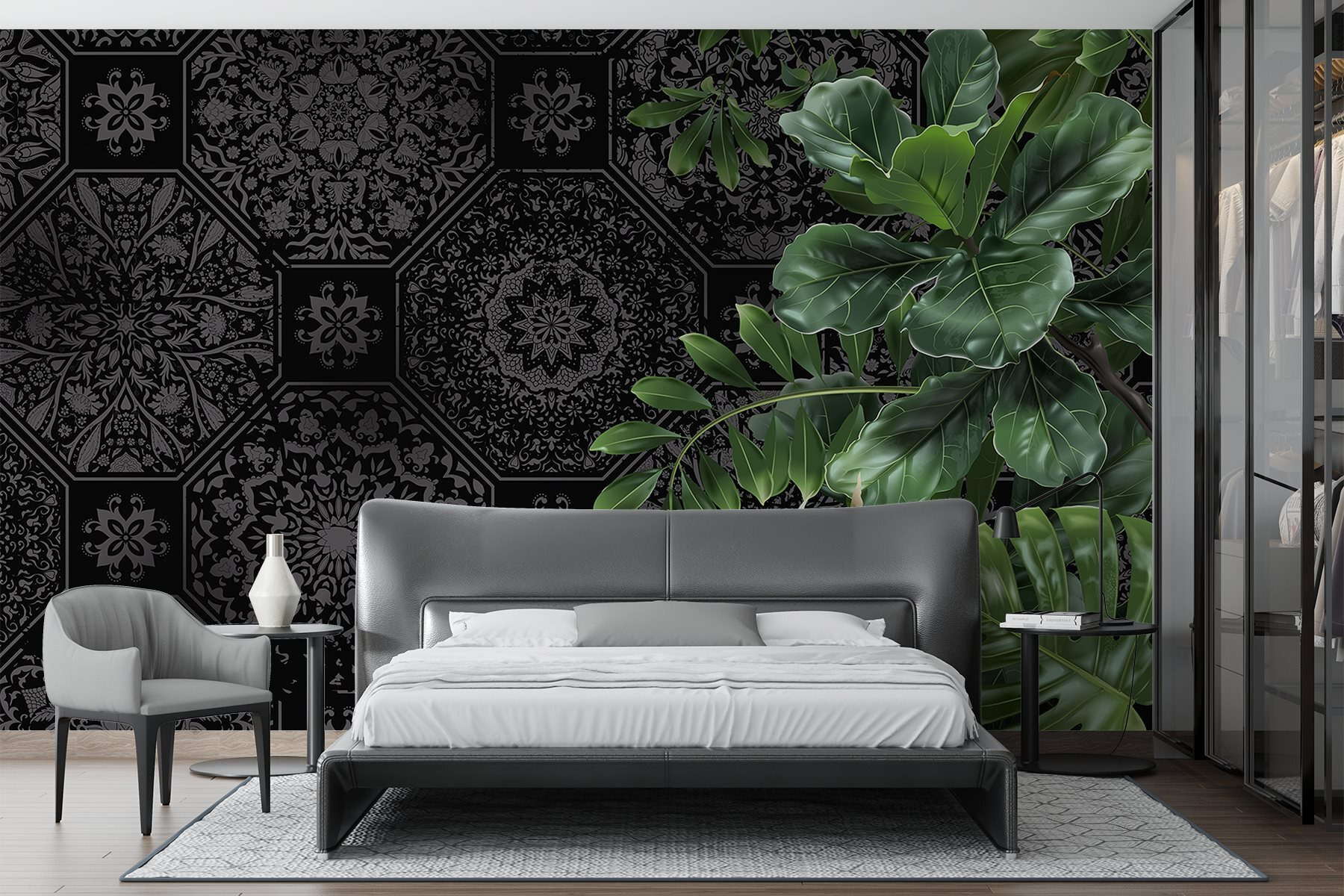 Proměňte svůj prostor pomocí této úžasné černošedé tapety se svěžími zelenými listy. Představte si, že vejdete do místnosti, která bude vypadat jako tropický únik! Složité geometrické vzory poskytují fantastické pozadí, zatímco tyto živé listy přinášejí příval života a energie. Budete se cítit jako v obklopení přírody – samozřejmě bez komárů! Tato nástěnná malba, která se skvěle hodí do útulného čtecího koutku nebo na výraznou stěnu, v sobě bez námahy spojuje eleganci s nádechem divočiny. Jste připraveni na pořádné stylové vibrace? Vaše stěny vám poděkují!