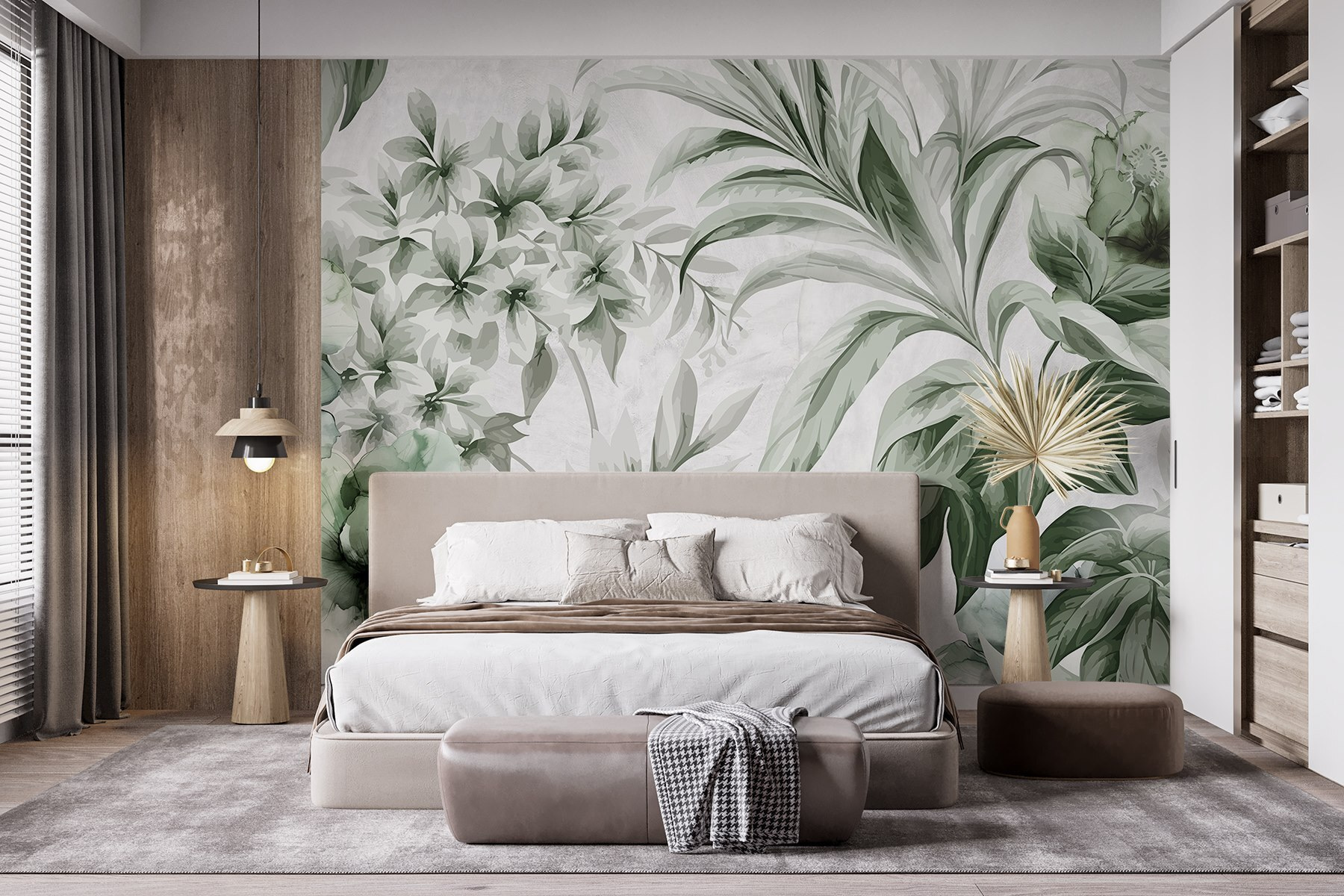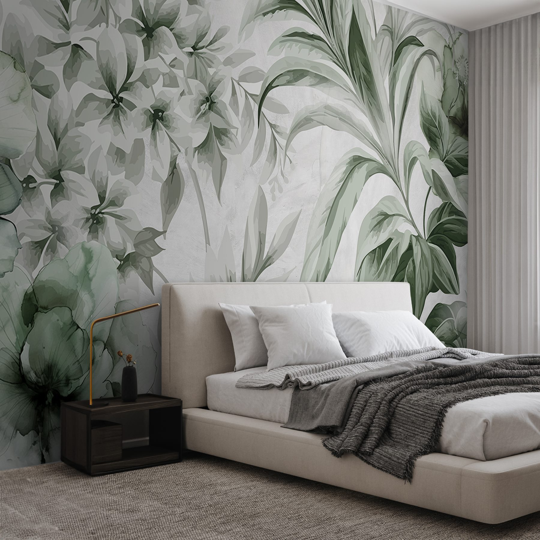 Proměňte jakýkoli prostor pomocí nástěnné malby “Jemné odstíny botanické elegance”. Představte si to: ležíte v obývacím pokoji obklopeni jemnou zelení a měkkými květinovými potisky, které našeptávají klid. Je to jako přenést si do interiéru klidnou zahradu – bez problémů s alergiemi. Jemná paleta zeleně a decentních květů vytváří klidnou atmosféru, která je ideální pro odpočinek po hektickém dni nebo pro sdílení milých chvil s přáteli. Možná se dokonce přistihnete, jak sníte o líných odpoledních na sluncem zalitém poli. Je to víc než stěna, je to atmosféra – útulná pozvánka k odpočinku a nasávání krásy přírody přímo u vás doma. Jen si představte ty komplimenty od hostů, až vejdou dovnitř!