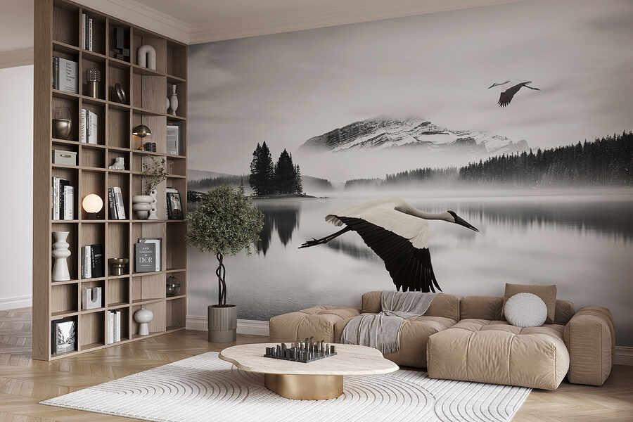 Proměňte svůj prostor pomocí této úchvatné nástěnné malby “Pták letící nad vodou”. Představte si klidnou krajinu, kde ladný jeřáb plachtí po mlžném jezeře a vyzařuje klid. Je to jako přenést si kus přírody do interiéru – není třeba mít zablácené boty ani sprej proti hmyzu! Tato nástěnná malba je ideální na prázdnou stěnu, která si říká o osobitý vzhled, a vnese do vašeho hektického dne klid.