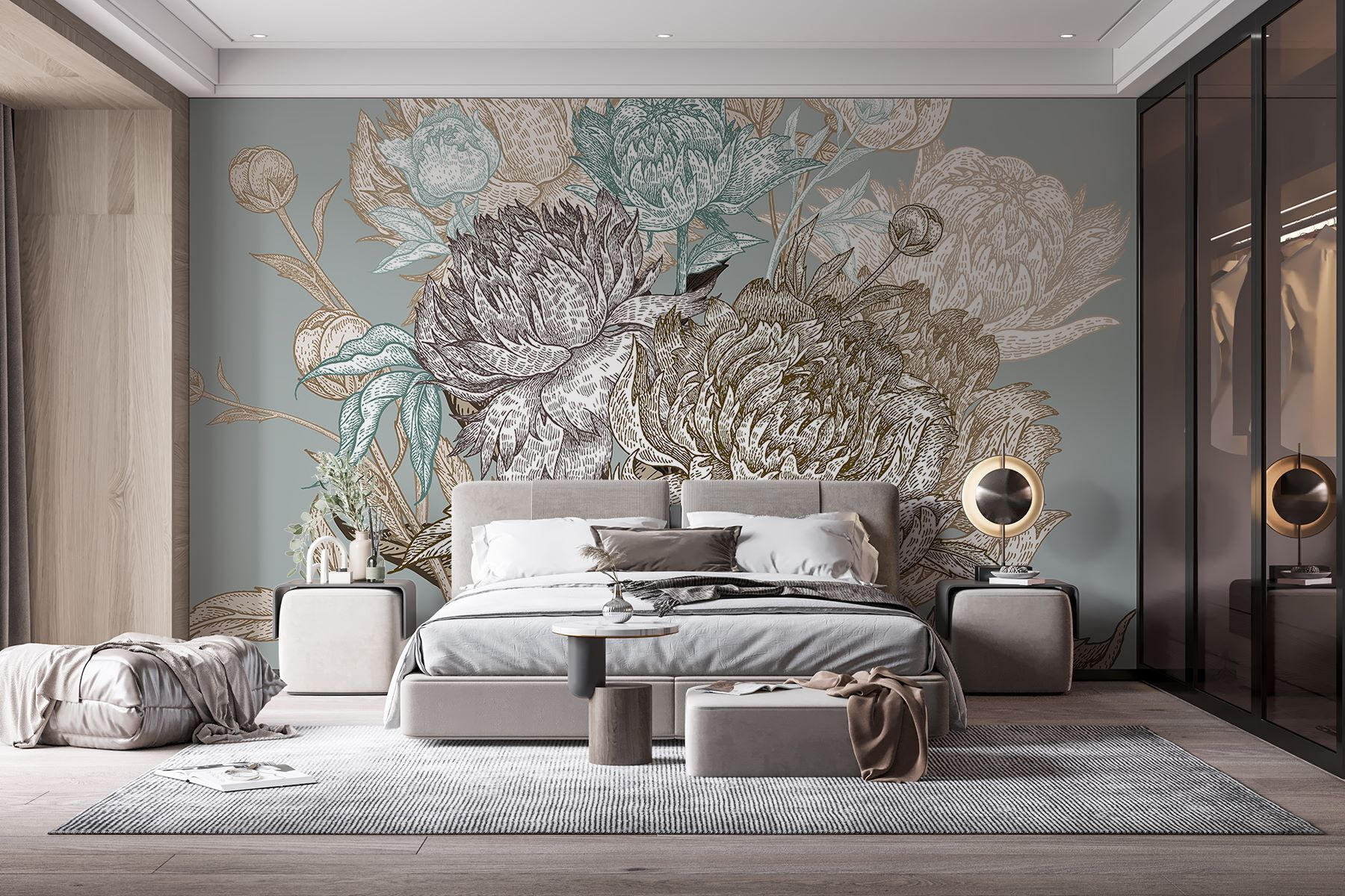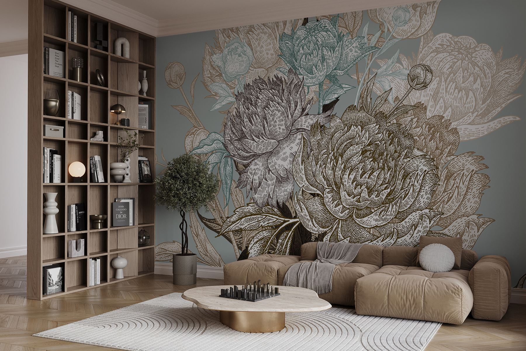 Proměňte nudnou zeď v útulnou zahradní oázu s touto úžasnou květinovou fototapetou! Díky jemným a delikátním odstínům navozuje klidnou atmosféru, která vás možná donutí zapomenout, že jste v interiéru. Představte si, že se usadíte do svého oblíbeného křesla se šálkem čaje v ruce, obklopeni elegantními pivoňkami a něžnými květy – kdo by řekl, že květiny mohou přinést takový klid? Tento design šeptá nadčasovou krásu a snadno se kombinuje s jakýmkoli stylem interiéru. Je ideální pro každého, kdo sní o kouzelném zákoutí, je to jako mít doma tajnou zahradu. Už je jaro?