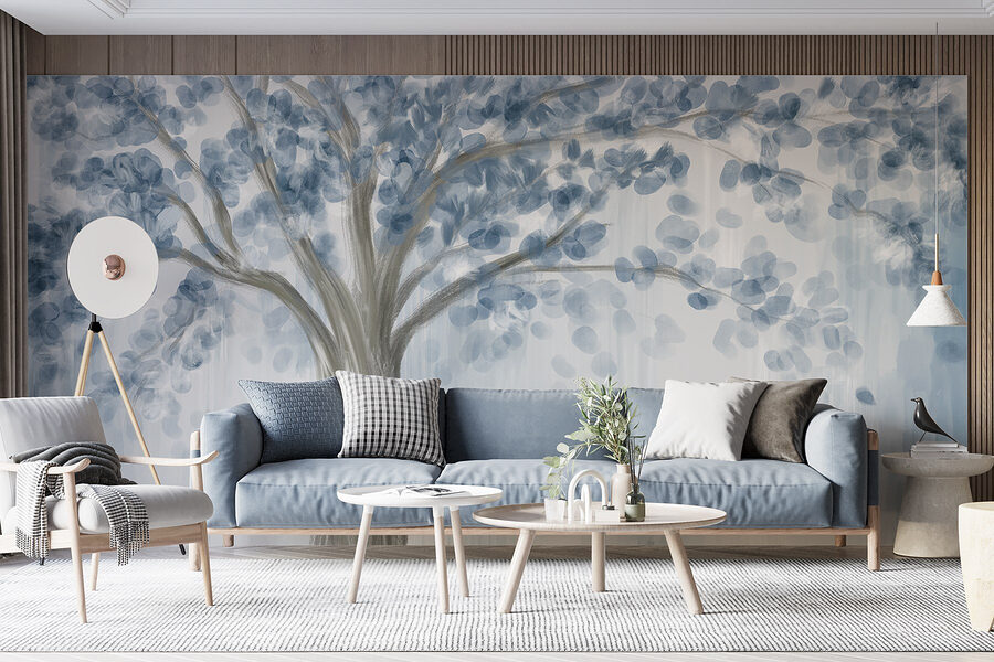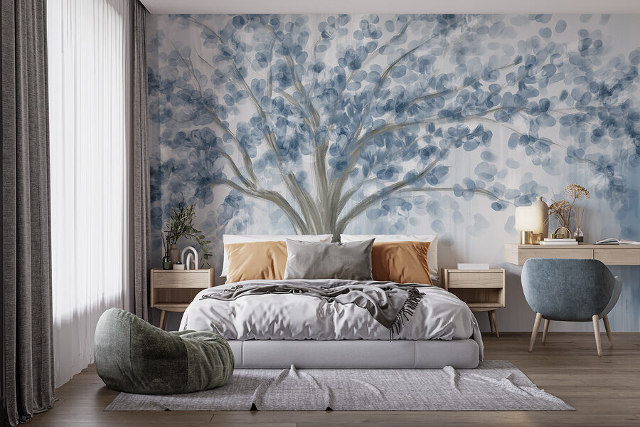 Proměňte jakýkoli prostor pomocí okouzlující nástěnné malby “Strom s modrými listy”. Tento úžasný kus vyvažuje vzdušné modré a jemné šedé barvy a navozuje klidný pocit, jako byste se procházeli klidným lesem. Představte si, že při pohledu na tyto zasněné větve popíjíte kávu – cítíte vůni čerstvého vzduchu? Bez námahy se hodí k moderním nebo rustikálním vibracím, takže je dostatečně univerzální pro útulný koutek nebo živější prostor. Navíc je to dokonalý začátek konverzace, který podnítí vyprávění o přírodě a dobrodružstvích. Vneste do interiéru dotek venkovní přírody a nechte své stěny dýchat!