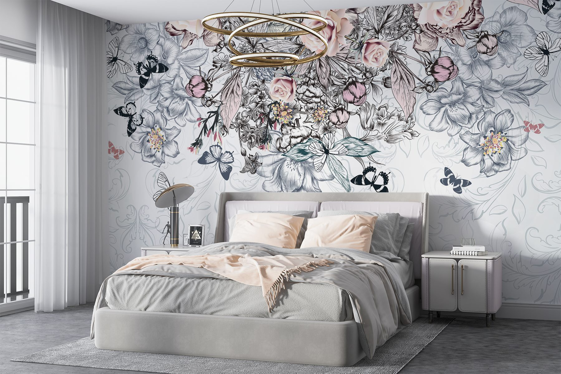 Proměňte svůj prostor v živé útočiště s touto úchvatnou nástěnnou malbou, která představuje úžasnou směs květin a motýlů. Je jako rozmarná zahrada, kde spolu tančí květy a křehká křídla a vytvářejí příjemnou atmosféru. Představte si to: vejdete do místnosti a okamžitě pocítíte povzbuzení, jako by jaro přišlo předčasně právě pro vás. Jemné barvy a okouzlující detaily vyvolávají radost a inspirují ke snění. Tato nástěnná malba, která se skvěle hodí do útulného čtecího koutku nebo veselé kuchyně, přináší přírodu do interiéru a šeptá sladké tóny odpočinku a krásy. Kdo by nechtěl mít doma trochu lehkého kouzla?