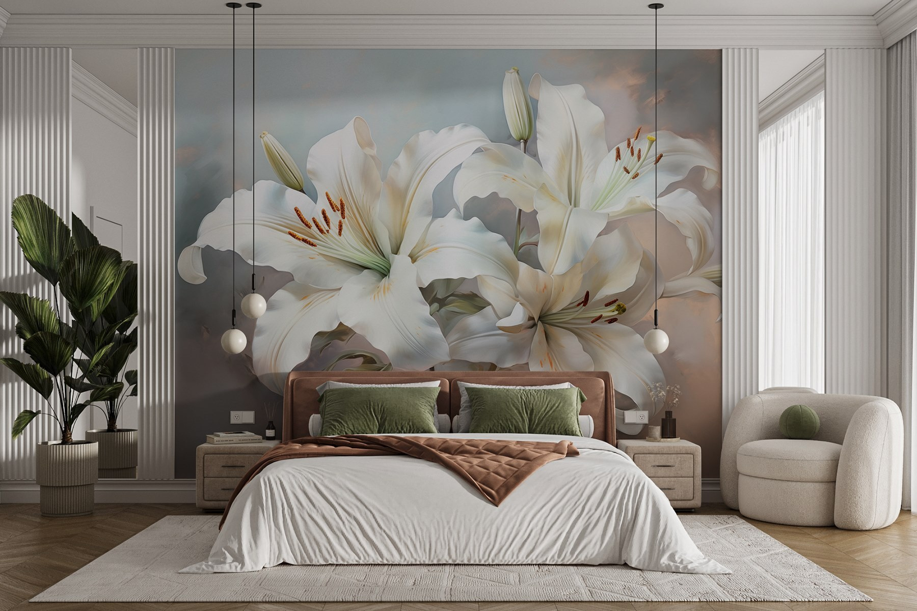 Proměňte svůj prostor v klidné útočiště s nástěnnou malbou “Jemné lilie v jemných odstínech”. Představte si, že vstoupíte do místnosti, kde vás přivítají měkké, splývavé lilie, které šeptají eleganci. Jemné barvy jsou jako útulné objetí, ideální pro rozjasnění malého koutku, kde popíjíte ranní kávu nebo odpočíváte po dlouhém dni. Každý má rád dobré květinové příběhy a tyto lilie mohou inspirovat sny o jarních piknicích a líných odpoledních. Přidejte tuto nástěnnou malbu a sledujte, jak se atmosféra změní – místnost bude lehčí a přívětivější. Je to jako mít zahradu, která nikdy neuvadne.