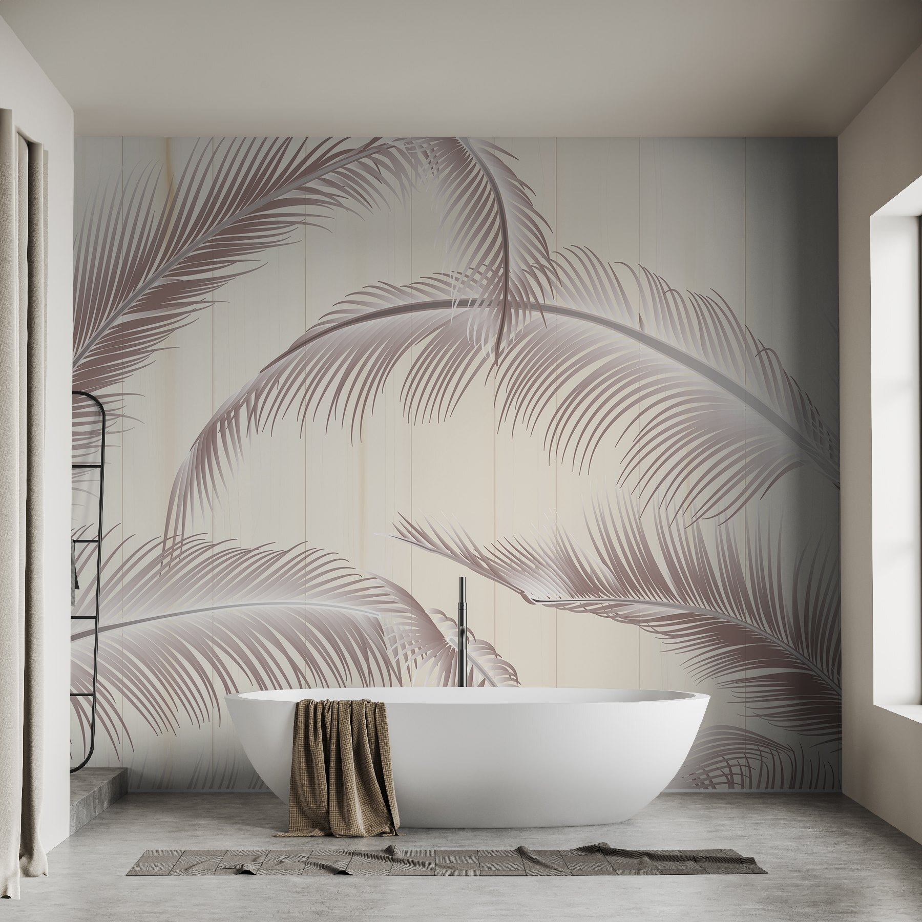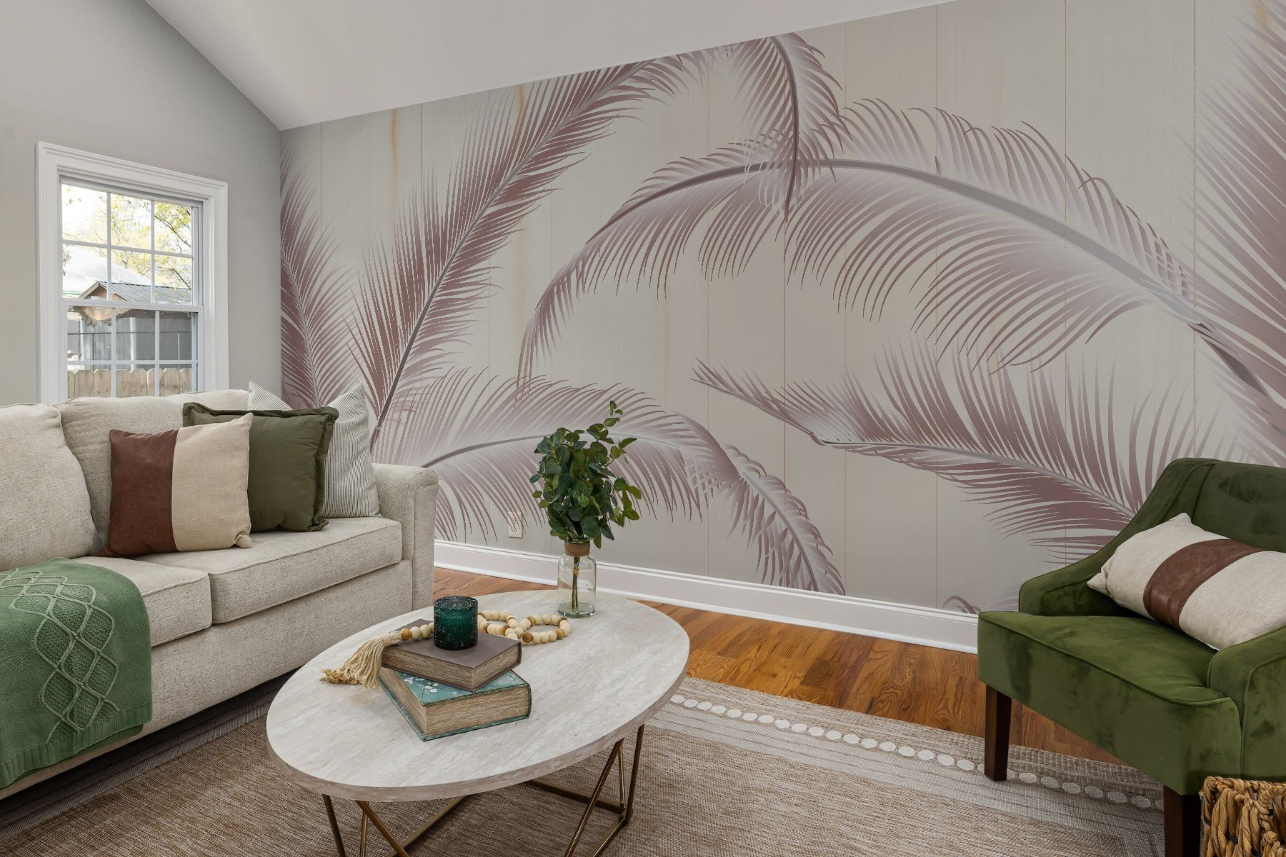Proměňte svůj prostor pomocí této zasněné nástěnné malby s názvem “Přírodní elegance v jemných tónech”. Představte si, že ležíte v klidné oáze, palmové listy se jemně pohupují a nechávají na vás působit klidné vibrace. Jemné odstíny vybízejí k útulnému pocitu, který doplní jakýkoli interiér, ať už se jedná o pohodový čtecí koutek nebo stylový obývací pokoj. Je to jako přenést kousek tropického ráje do interiéru – bez opalovacího krému! Představte si, jak popíjíte kávu, zatímco skrz ni proniká sluneční světlo a vrhá hravé stíny. Tato nástěnná malba je ideální pro ty, kteří touží po doteku přírody, a je podnětem ke konverzaci a každodenní připomínkou útěku na slunnou pláž.