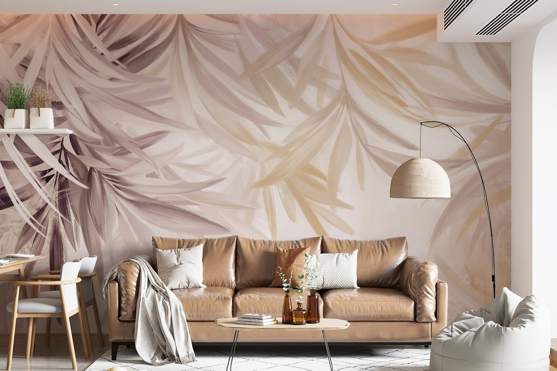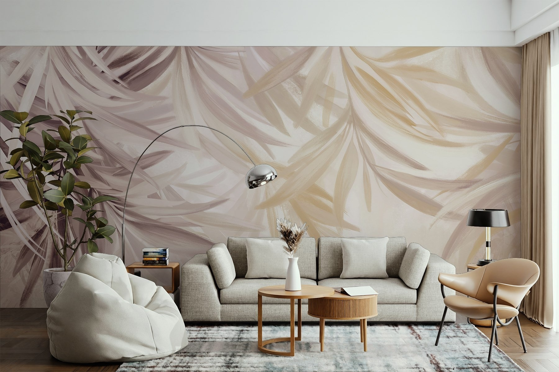 Proměňte jakoukoli místnost v klidné útočiště s touto úchvatnou tapetou „Nature’s Soft and Serene Palette” (Jemná a klidná paleta přírody). Představte si to: každé ráno se probouzíte za doprovodu jemných, vlnících se palem, které vám šeptá klid do nového dne. Její jemné odstíny přinášejí nádech tropického blaha, díky čemuž se budete cítit jako na mini dovolené doma – bez spálení od slunce!