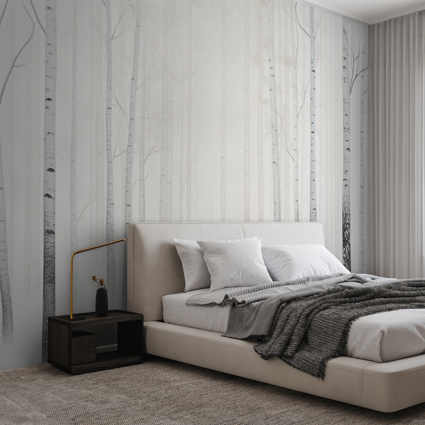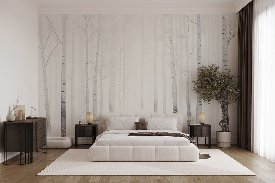 Proměňte svůj prostor v klidnou zimní říši divů s touto nástěnnou malbou se skupinou stromů v zasněženém lese. Představte si, že se probouzíte do uklidňujícího výjevu bříz, jejichž štíhlé kmeny se hrdě tyčí na měkkém zasněženém pozadí. Je to jako přenést si kousek přírody do interiéru – bez nutnosti odklízení sněhu! Tato nástěnná malba našeptává klid, takže je ideální pro útulná zákoutí nebo klidné ložnice. Představte si, jak se choulíte s horkým nápojem, měkkými přikrývkami a jemným tichem padajícího sněhu venku. Dokonalý únik přímo u vás doma!