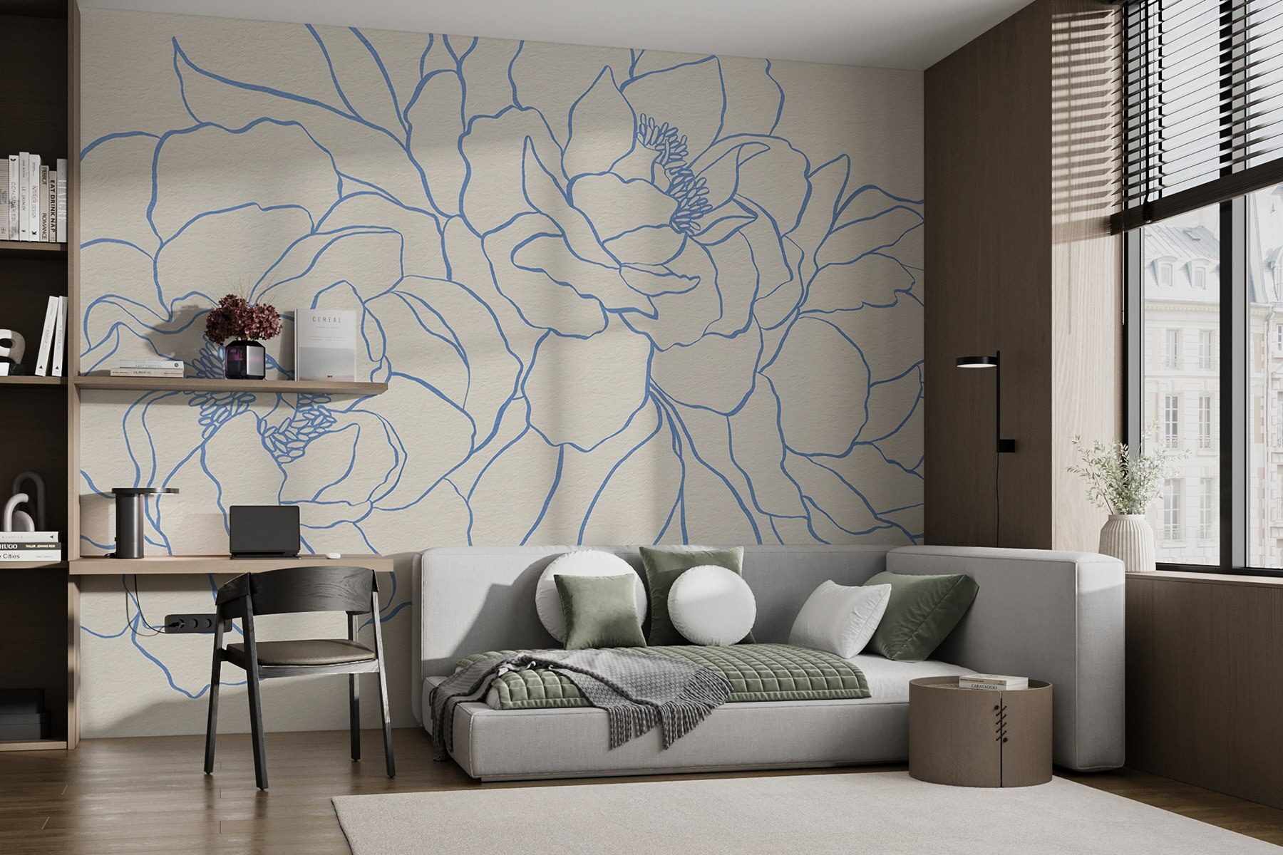 Vneste do svého prostoru nádech klidné krásy s touto okouzlující fototapetou s jemnými květinami nakreslenými v jemné modré barvě na teplém krémovém pozadí. Je to jako mít klidnou rozkvetlou zahradu přímo na zdi! Tato fototapeta je ideální pro útulný čtecí koutek nebo živý obývací pokoj a dodá mu nádech osobnosti, aniž by byla příliš výrazná. Představte si, jak popíjíte šálek čaje, obklopeni těmito krásnými květy, a cítíte, jak všechny vaše starosti mizí. Akvarelový styl navíc dodává tapetě svěží, umělecký nádech. Je to jako jemné objetí od Matky přírody – jednoduché, ale ohromující vylepšení pro každou místnost!