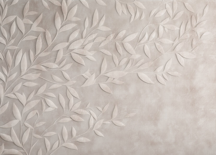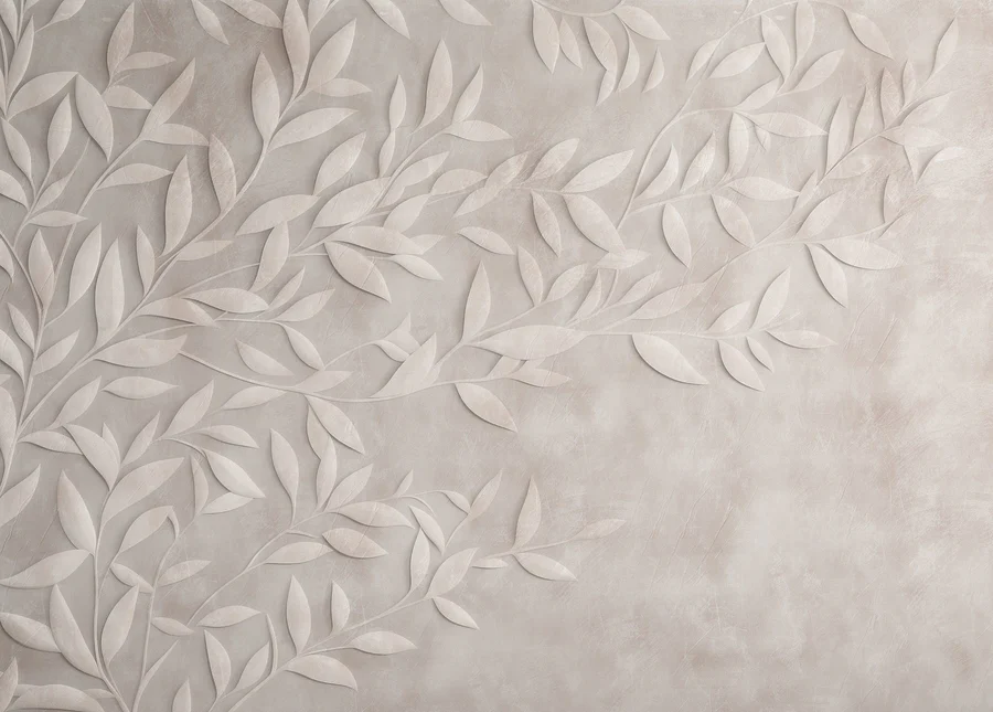 Fototapeta Bílý listový vzor na stěně (SKU: w08735)