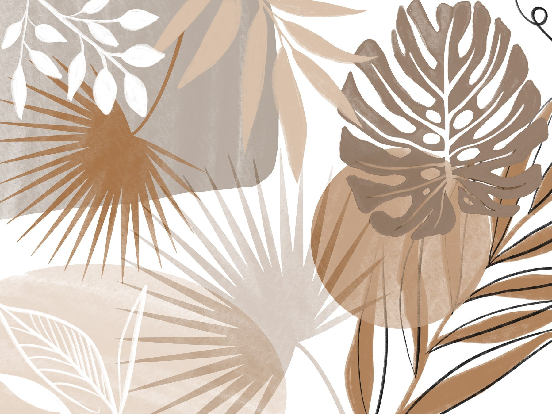 Proměňte svůj prostor pomocí této úchvatné nástěnné malby s abstraktním vzorem inspirovaným přírodou. Představte si, že vstoupíte do svého pokoje a přivítá vás ohromující příval zemitých tónů a půvabných listů. Je to jako přenést si kousek tropické oázy přímo do svého domova.