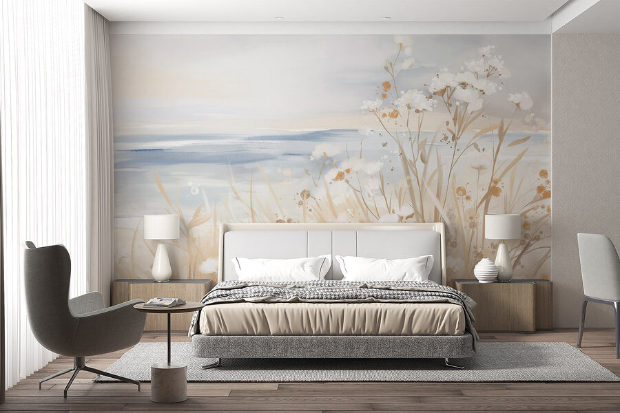 Proměňte svůj prostor pomocí této úžasné nástěnné malby s jemnými květinami a měkkými travinami. Představte si, že vejdete do místnosti, která působí jako jemný vánek v teplém jarním dni. Zemité tóny a akvarelová atmosféra vytvářejí uklidňující atmosféru, která dokáže rozzářit každý kout domu. Ať už se jedná o útulný čtecí koutek nebo živý obývací pokoj, tato nástěnná malba zve do interiéru dotek přírody. Přátelé by mohli říct, že se cítí jako mini útěk do klidné zahrady. Tak směle do toho, přijměte to květinové kouzlo a nechte ty květy vdechnout život vašemu prostoru!