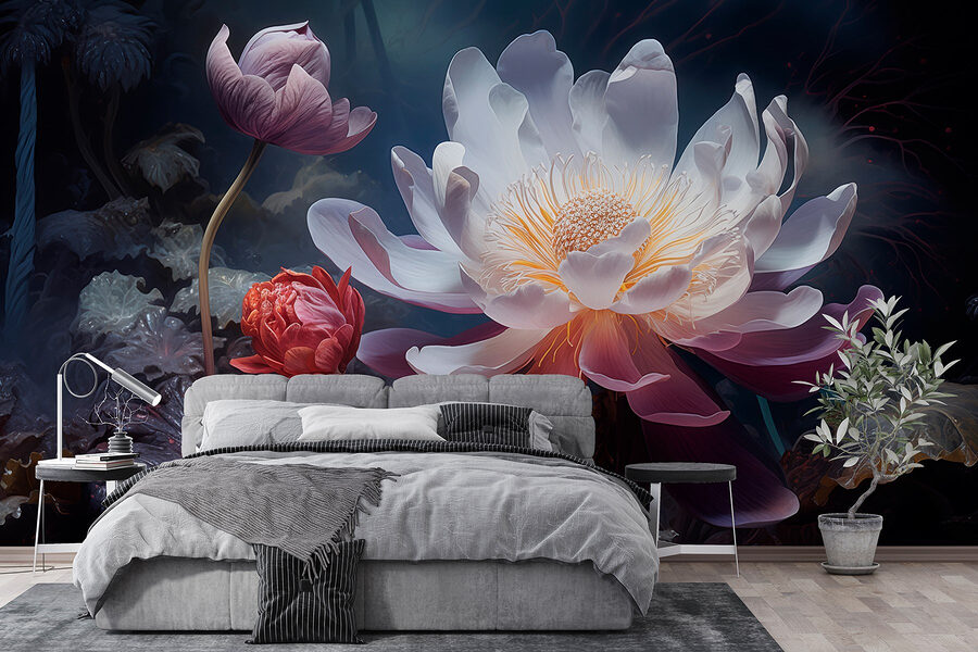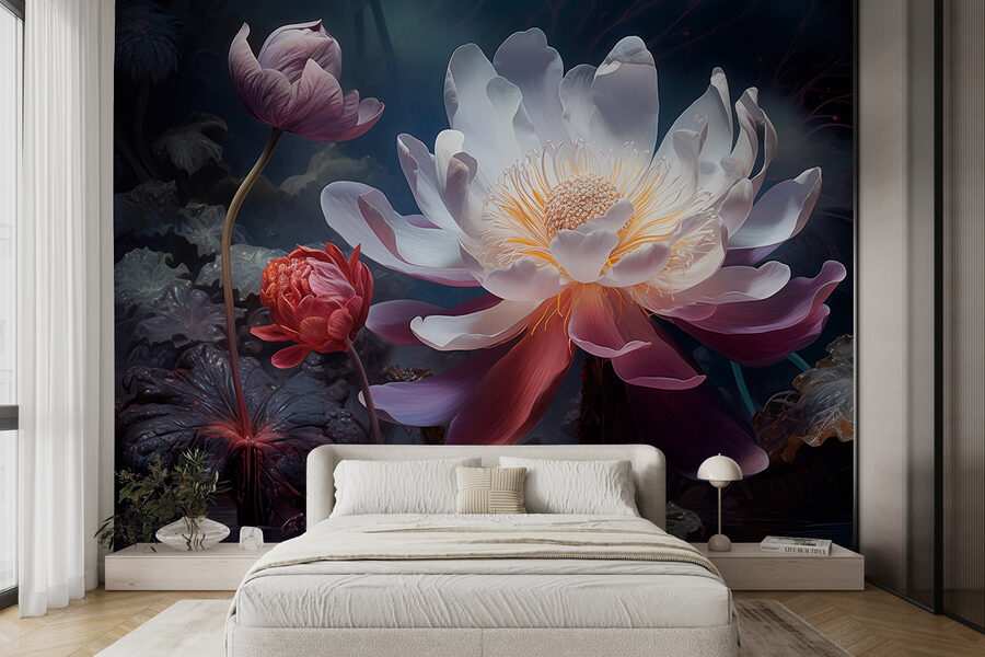 Proměňte jakoukoli místnost v klidné útočiště s tapetou „Delicate Blooms in Tranquil Waters“ (Jemné květy v klidných vodách). Představte si, že vstupujete do prostoru, který připomíná tajnou zahradu, kde nadživotní lotosové květy jemně tančí v měkkých odstínech a vyzařují klidnou atmosféru. Je to jako ty chvíle, kdy popíjíte čaj u krásného jezera a jen tak si to všechno užíváte. Navíc můžete téměř slyšet květiny šeptat: „Už žádné nudné stěny!“ Ideální pro útulný koutek nebo dokonce pro stěnu, která vždy působí osaměle. Je to více než dekorace, je to nálada. Kdo by řekl, že pouhé přidání tapety může vyvolat pocit klidu? Ponořte se do klidu – čeká na vás!