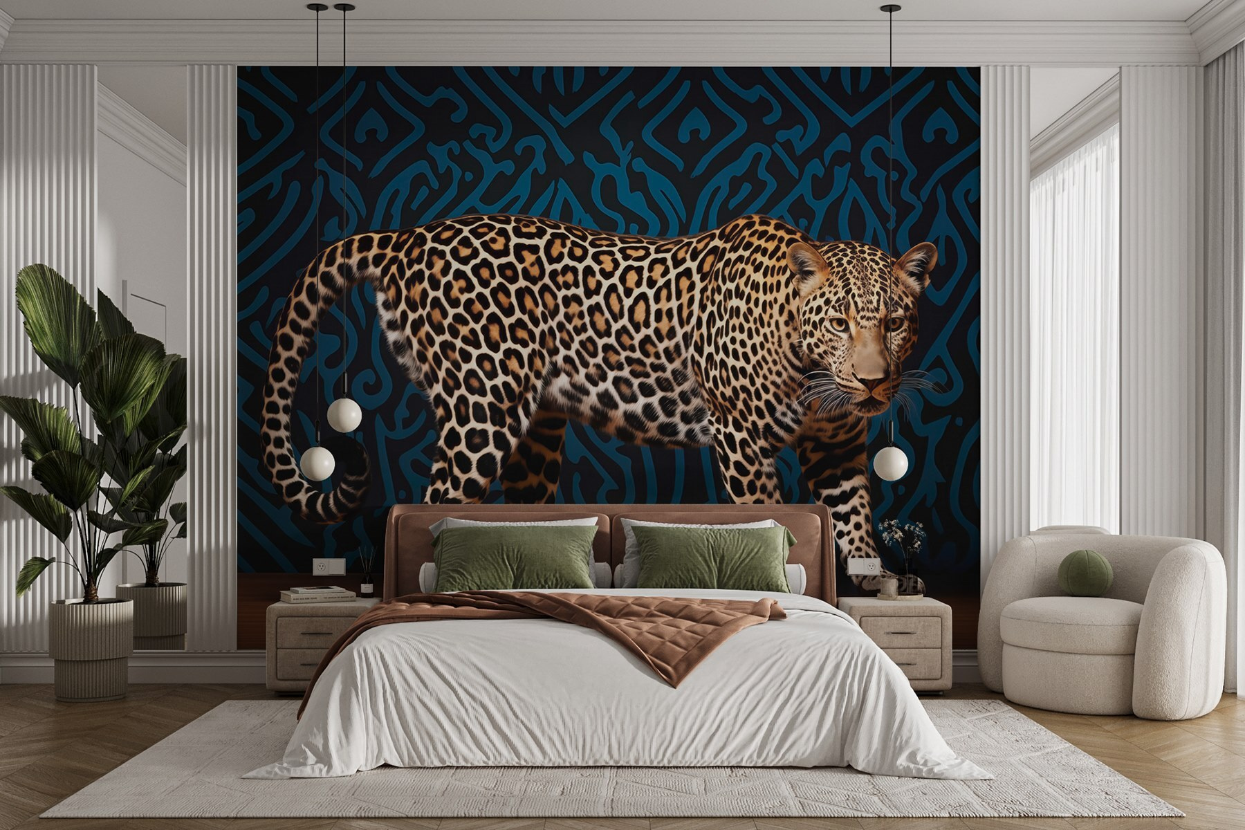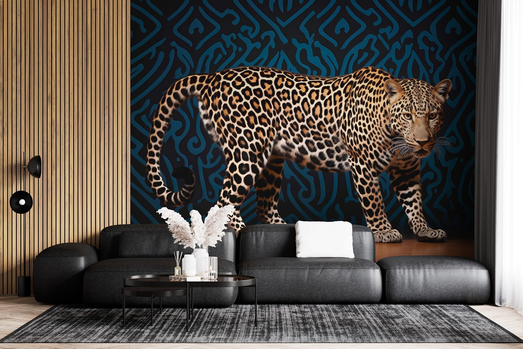 Představte si, že vejdete do místnosti a pocítíte okamžitou vzpruhu – hravé vzrušení, protože leopard jako by byl připraven seskočit přímo ze zdi. Přátelé se zastaví a zpozorní a rozhovory o dekoru budou jiskřit jako u táboráku. Jen si představte, jak sedíte na pohovce s drinkem v ruce, obklopeni tímto majestátním tvorem a kulisou, která šeptá příběhy o dobrodružství. Kdo by se necítil inspirovaný? Je to víc než jen nástěnná malba; je to zážitek, který čeká na své rozvinutí.