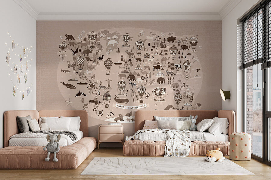 Proměňte jakoukoli místnost pomocí této fantazijní „nástěnné malby mapy Spojených států“. Představte si to: zářivé barvy, hravé ilustrace ikonických zvířat a slavných památek, to vše pohromadě na jedné veselé nástěnné malbě. Je to jako malá dovolená pokaždé, když někdo projde kolem! Ať už je to v dětském pokoji nebo v hravé kanceláři, nástěnná malba podněcuje kreativitu a konverzaci. Představte si hosty, jak se procházejí a ukazují na svá oblíbená místa – „Podívej, tam je Yosemite!“ nebo „Ten medvěd se mi líbí!“ Není to jen dekorace, je to dobrodružství, které čeká na své uskutečnění. Tak ji pověste a nechte své stěny vyprávět příběh!