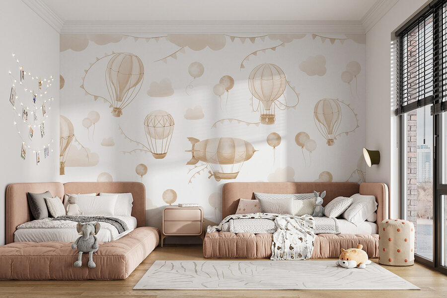 Proměňte jakoukoli místnost pomocí této rozmarné nástěnné malby s živou skupinou horkovzdušných balónů plujících nad mírnými horami. Je to jako přenést kousek dobrodružství do interiéru, kde každý pohled působí jako pohled do nekonečné oblohy. Jemné odstíny vybízejí k uvolněné atmosféře, která je ideální pro útulné prostory, kde ožívá snění. Představte si, že popíjíte čaj a sledujete, jak se kolem vás vznášejí tyto okouzlující balónky, z nichž každý podněcuje malou představivost. Ať už v dětském pokoji nebo v kreativním koutku, tato nástěnná malba dodá rozkošný nádech radosti a připomene každému, aby vždy mířil vysoko a snil ve velkém.