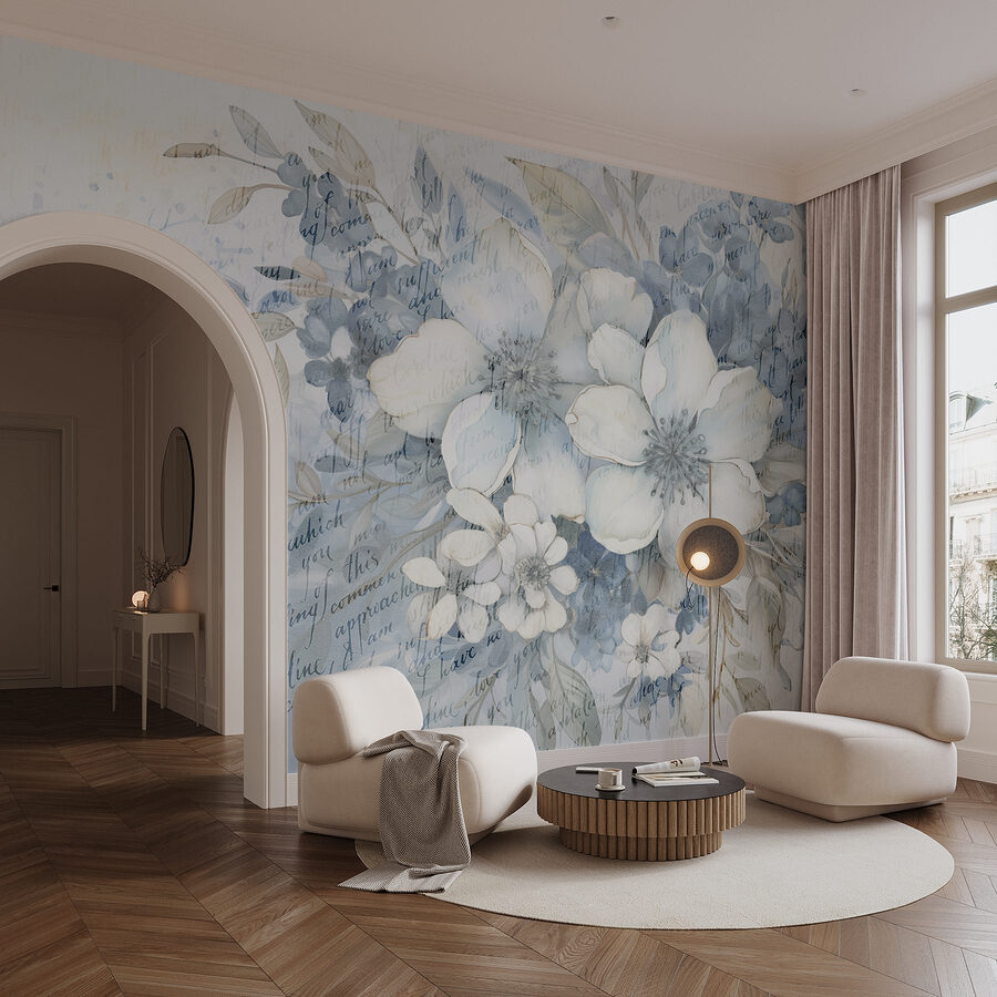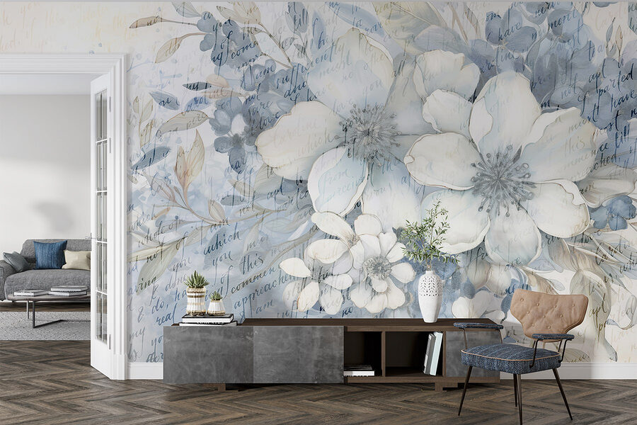 Proměnit nudnou zeď v rozkvetlý ráj je stejně snadné jako s touto „nástěnnou malbou květin a listů“. Jemné akvarelové odstíny, které tančí po povrchu, vnášejí do každého prostoru nádech přírody. Představte si, jak si v neděli ráno odpočíváte ve svém obývacím pokoji, obklopeni těmito uklidňujícími květinami, a popíjíte kávu. Je něco úžasného na pohledu na květiny, které nikdy nezvadnou! Navíc jemné náznaky textu přidávají trochu tajemství – jako tiše šeptaná báseň. Ideální pro milovníky přírody nebo kohokoli, kdo chce dodat svému interiéru svěží atmosféru. Kdo by se při pohledu na to neusmál?