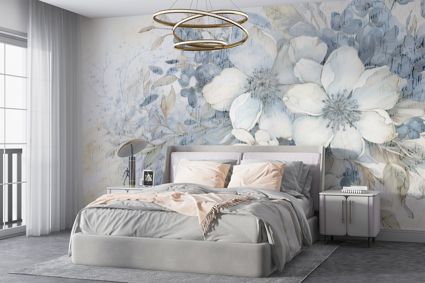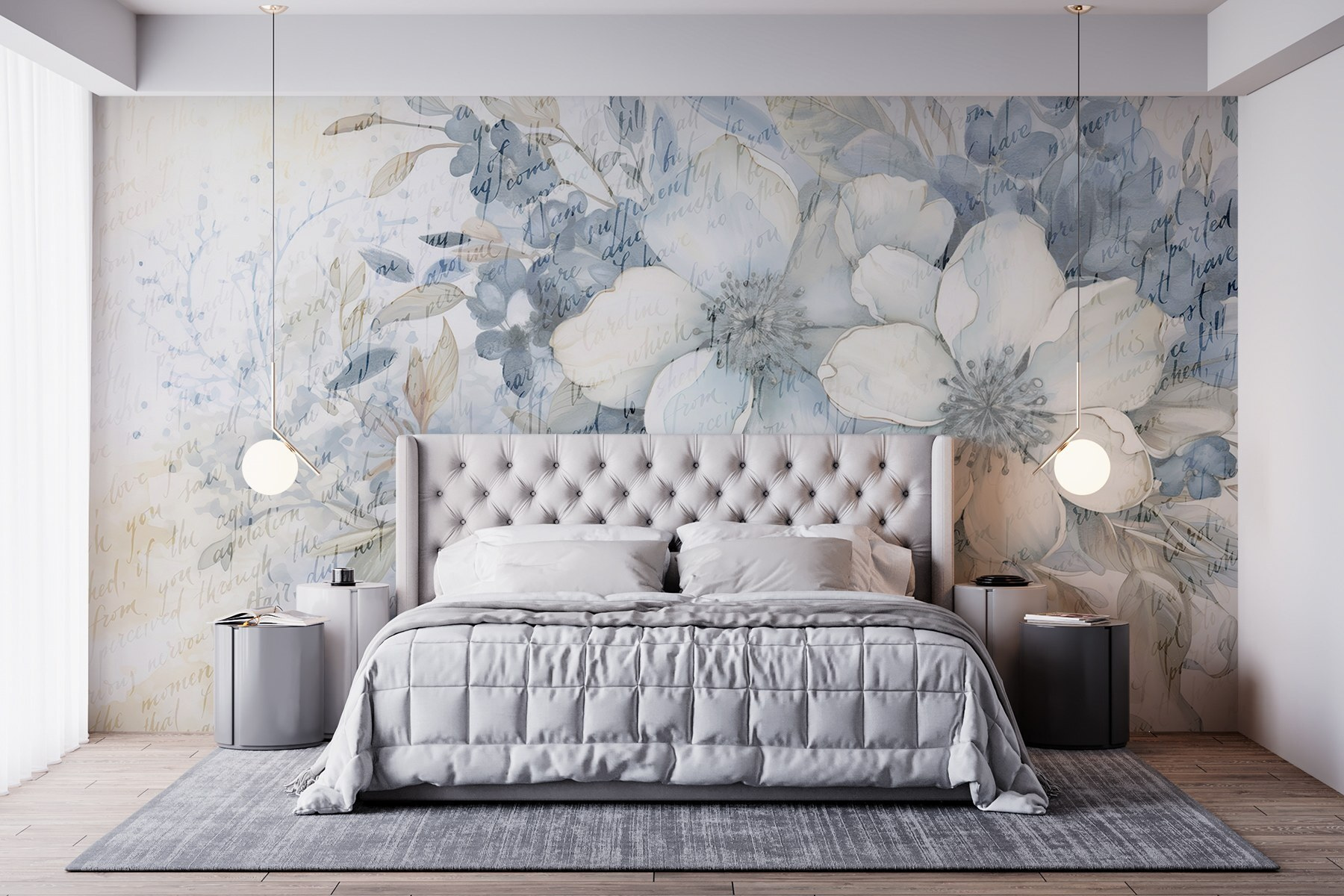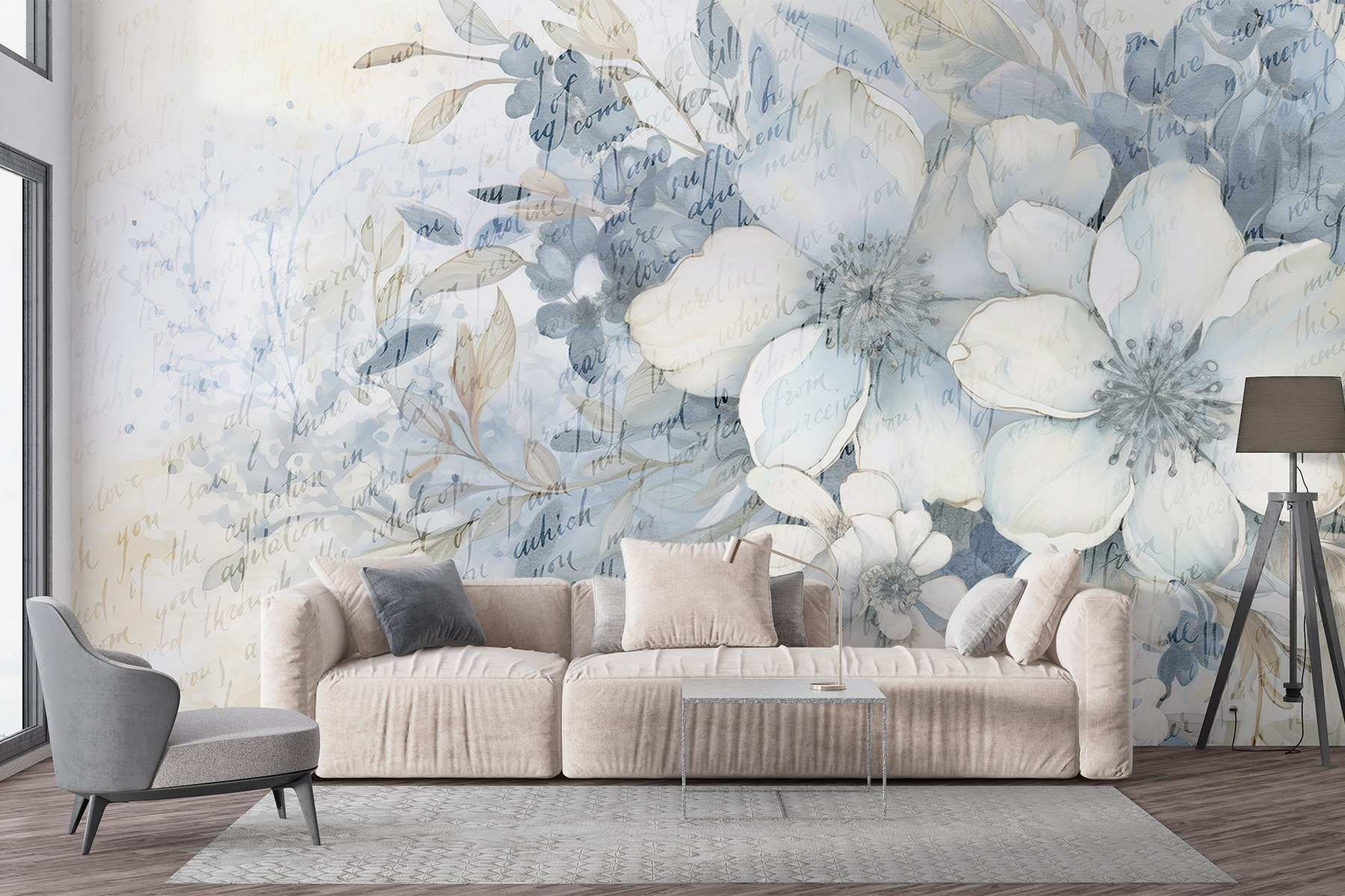 Proměnit nudnou zeď v rozkvetlý ráj je stejně snadné jako s touto „nástěnnou malbou květin a listů“. Jemné akvarelové odstíny, které tančí po povrchu, vnášejí do každého prostoru nádech přírody. Představte si, jak si v neděli ráno odpočíváte ve svém obývacím pokoji, obklopeni těmito uklidňujícími květinami, a popíjíte kávu. Je něco úžasného na pohledu na květiny, které nikdy nezvadnou! Navíc jemné náznaky textu přidávají trochu tajemství – jako tiše šeptaná báseň. Ideální pro milovníky přírody nebo kohokoli, kdo chce dodat svému interiéru svěží atmosféru. Kdo by se při pohledu na to neusmál?