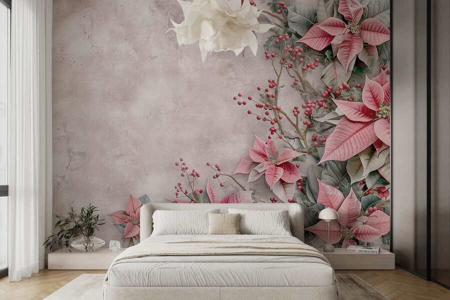 Proměňte svůj prostor pomocí této snové tapety s nádhernými růžovými květy a veselými bobulemi rozesetými na jemně bílém pozadí. Je to jako přivést si jemnou zahradu dovnitř – představte si, že se každý den probouzíte s touto okouzlující scenérií! Barvy jsou tak uklidňující, že v sobě možná skrývají tajemství relaxace. Ať už se jedná o útulný koutek na čtení nebo živý obývací pokoj, tato tapeta dodá interiéru nádech fantazie a kouzla přírody. Vaši přátelé se zastaví v úžasu, protože nebudou vědět, zda vstoupili do galerie nebo do vašeho domova. Kdo by řekl, že dekorace může vyvolat takovou radost? Ideální pro ty, kteří věří, že každá zeď vypráví příběh – jaký je ten váš?