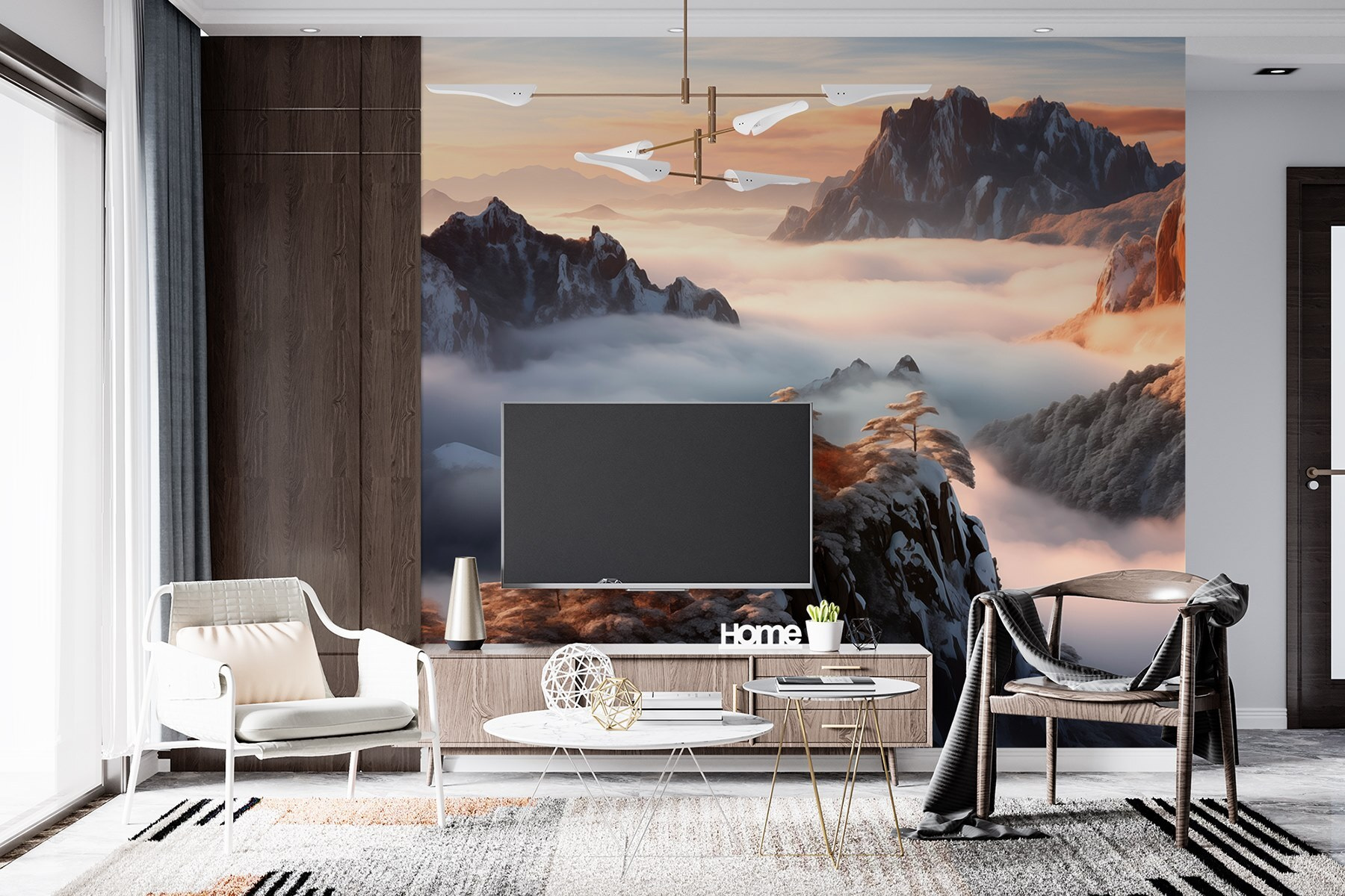 Transform your space into a serene escape with this breathtaking wall mural of a snow-capped mountain range, shrouded in soft, swirling clouds. Imagine sipping your coffee while gazing at majestic peaks that seem to whisper tales of adventure. It’s like stepping into a winter wonderland, minus the actual snow shoveling. This mural brings a perfect blend of tranquility and grandeur to any room—whether it’s a cozy corner or a bustling living area. Let the cool colors wrap around you, making every day feel like a peaceful retreat. Plus, it’s a surefire conversation starter! Who could resist chatting about those stunning views? Perfect for nature lovers or anyone needing a little calm in their life.