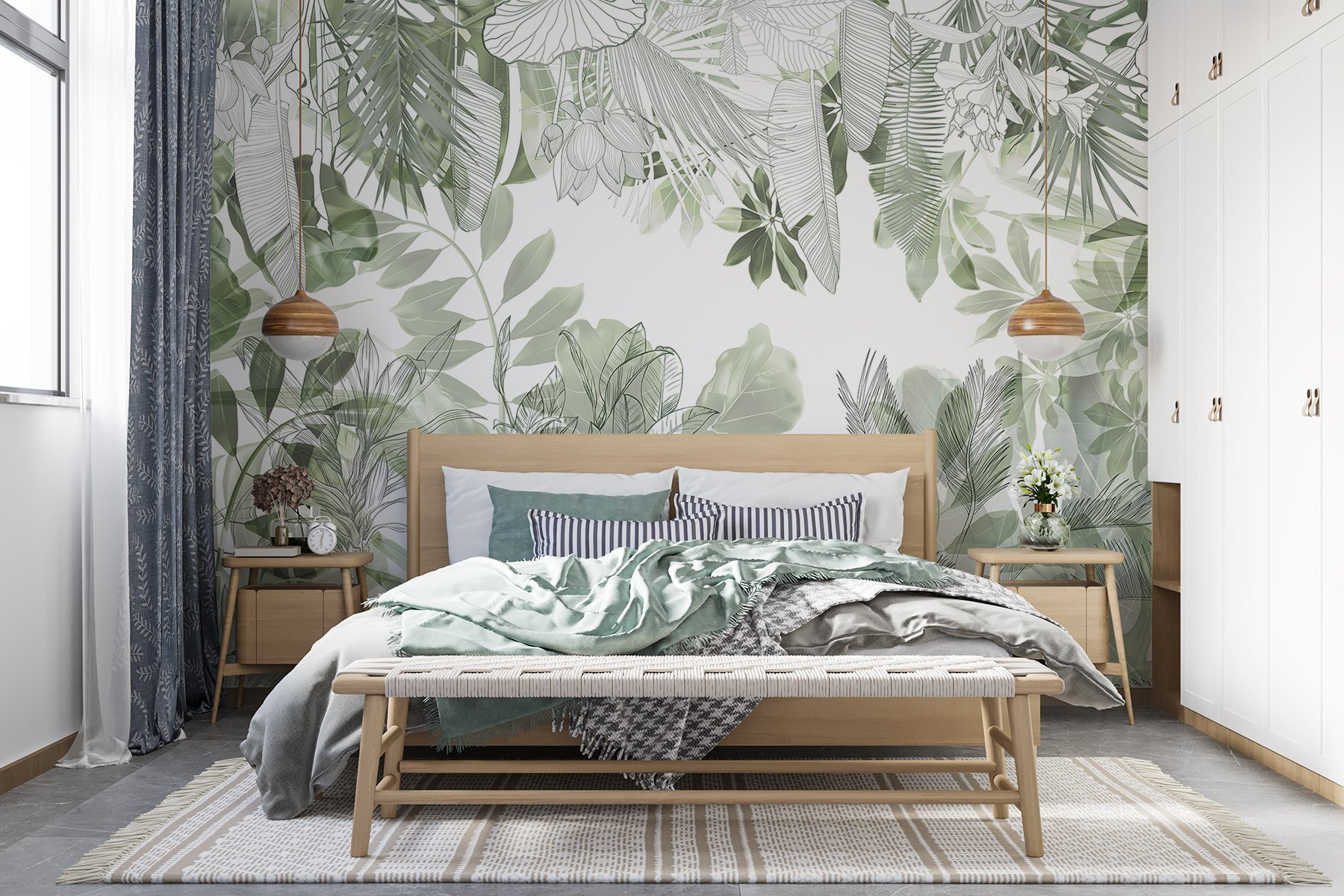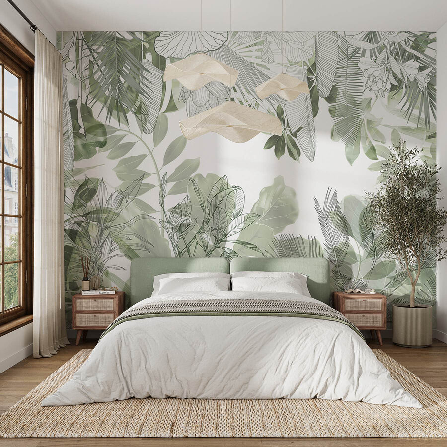 Transform any wall into a serene escape with the “Nature’s Delicate Green Embrace” mural. Imagine walking into a room that feels like a gentle forest hug—soft greens and delicate outlines of leaves wrap around you like a cozy blanket. It’s the kind of mural that makes you want to kick back with a good book or sip a cup of tea while daydreaming. Whether it’s in a living room or a tranquil reading nook, this piece brings a breath of fresh air indoors. Plus, it’s a perfect reminder that nature’s beauty can thrive anywhere, even if the outdoors is just a bit too far away. Who wouldn’t feel more relaxed with such lush vibes?
